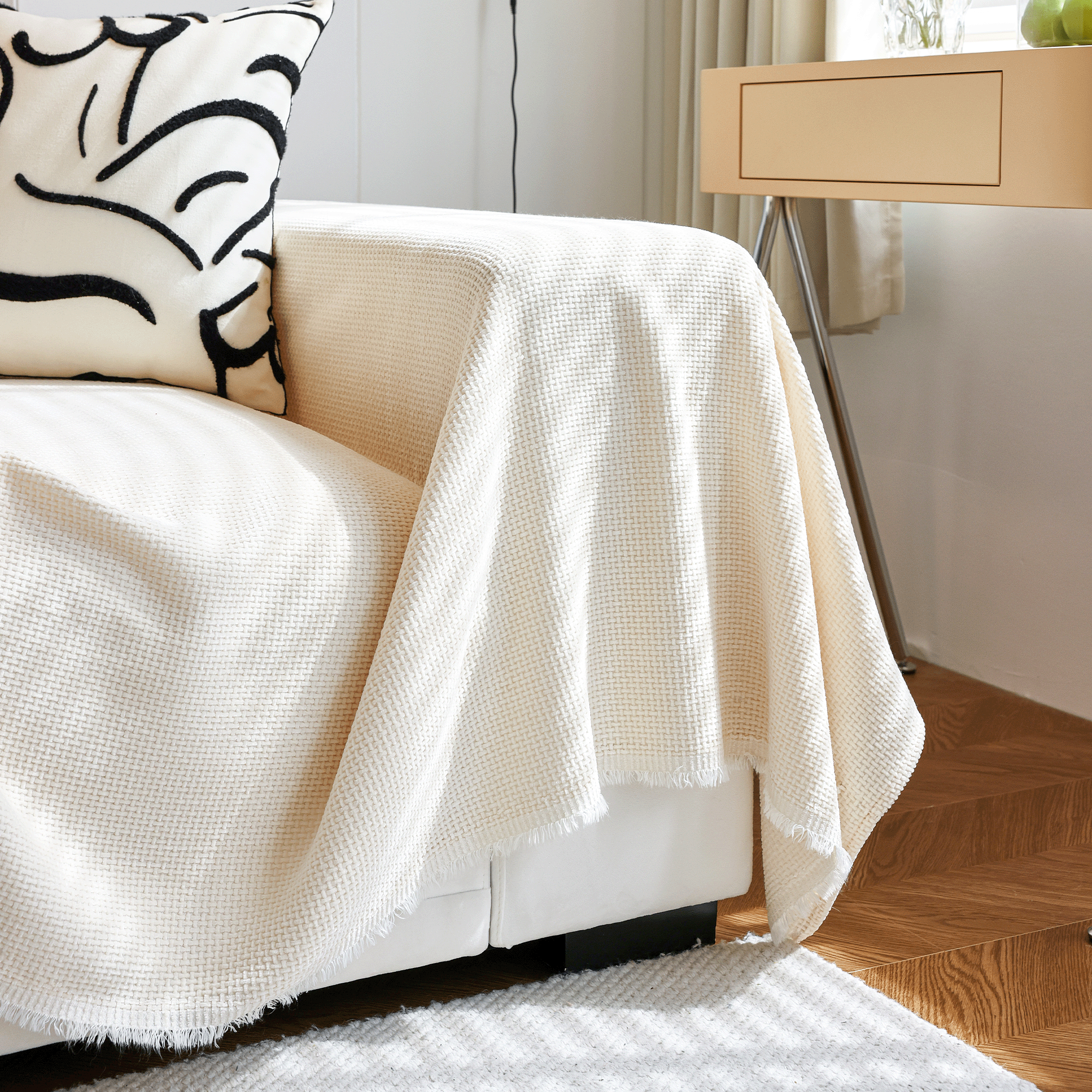 Funda de sofá minimalista, suave y transpirable, con diseño de espiga, apta para mascotas, multiusos y protector de sofá tejido.