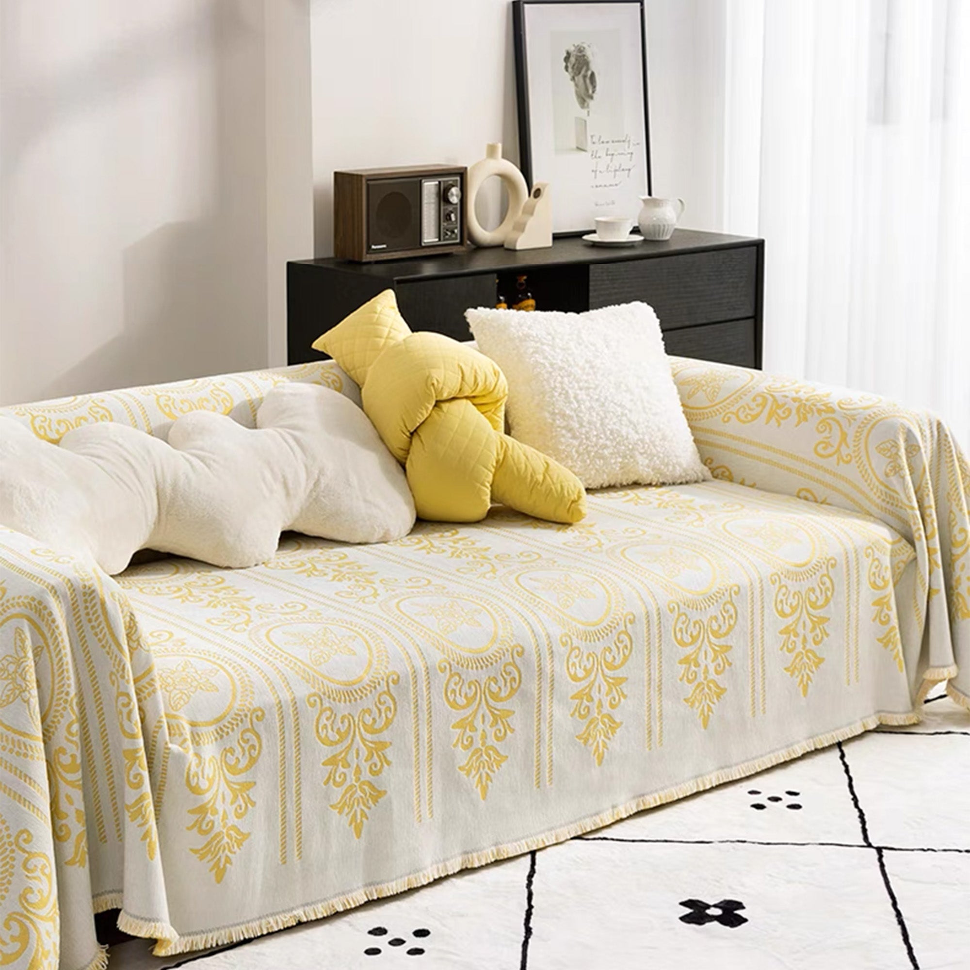 Mejora tu espacio vital con la funda de sofá barroca clásica. Esta elegante funda presenta un hermoso patrón barroco amarillo y blanco que añade un toque de sofisticación a cualquier habitación. Confeccionada con tela de primera calidad, proporciona estilo y protección, lo que la convierte en un complemento lujoso y práctico para la decoración de tu hogar.