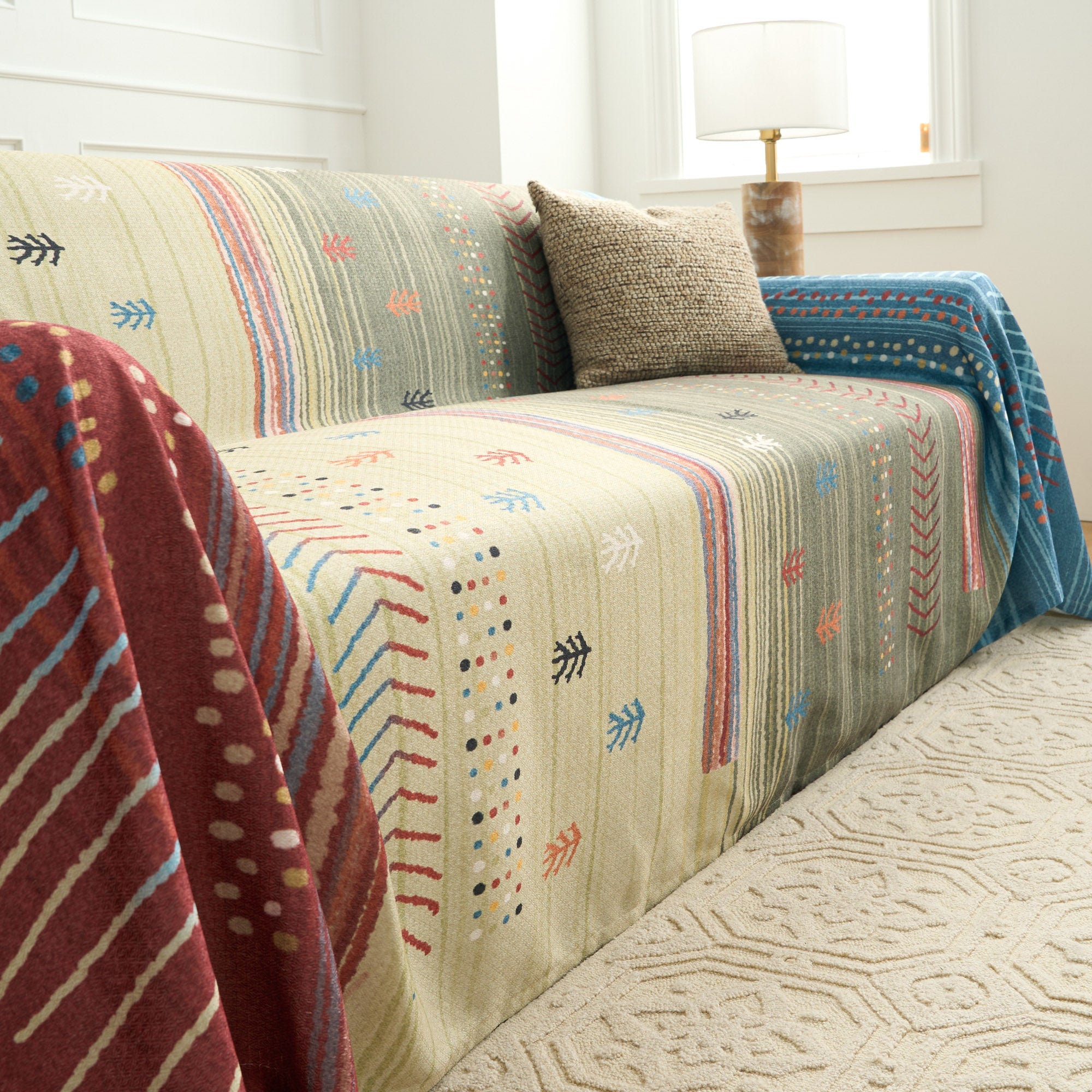 Funda de sofá vintage minimalista multiusos, apta para mascotas, con diseño tribal gemométrico en tonos pastel suaves