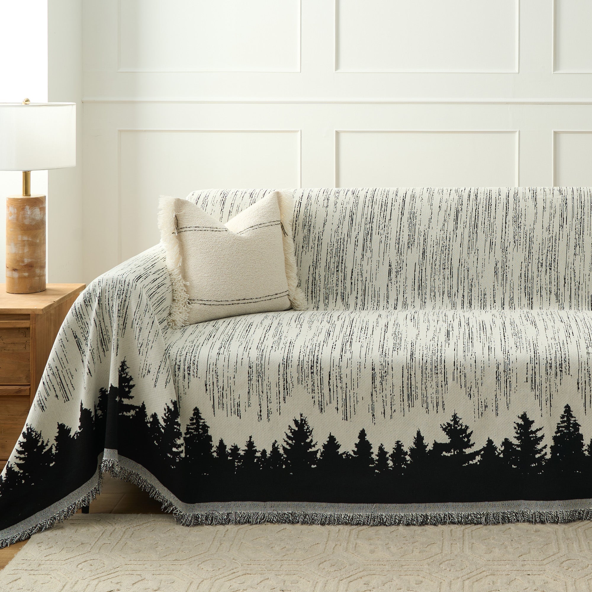 Transforma tu sala de estar en un tranquilo refugio en el bosque con esta funda de sofá Forest Silhouette. El diseño minimalista en blanco y negro presenta una impresionante línea de árboles sobre un fondo texturizado, lo que añade un toque de tranquilidad natural a tu hogar. Perfecto para proteger tus muebles y, al mismo tiempo, realzar tu decoración.