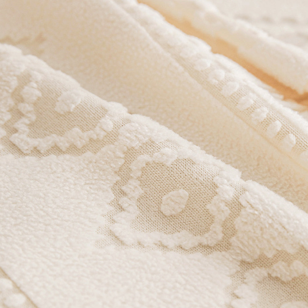 Los patrones geométricos en relieve añaden profundidad y encanto artesanal, complementando maravillosamente los interiores bohemios, neutrales y modernos.