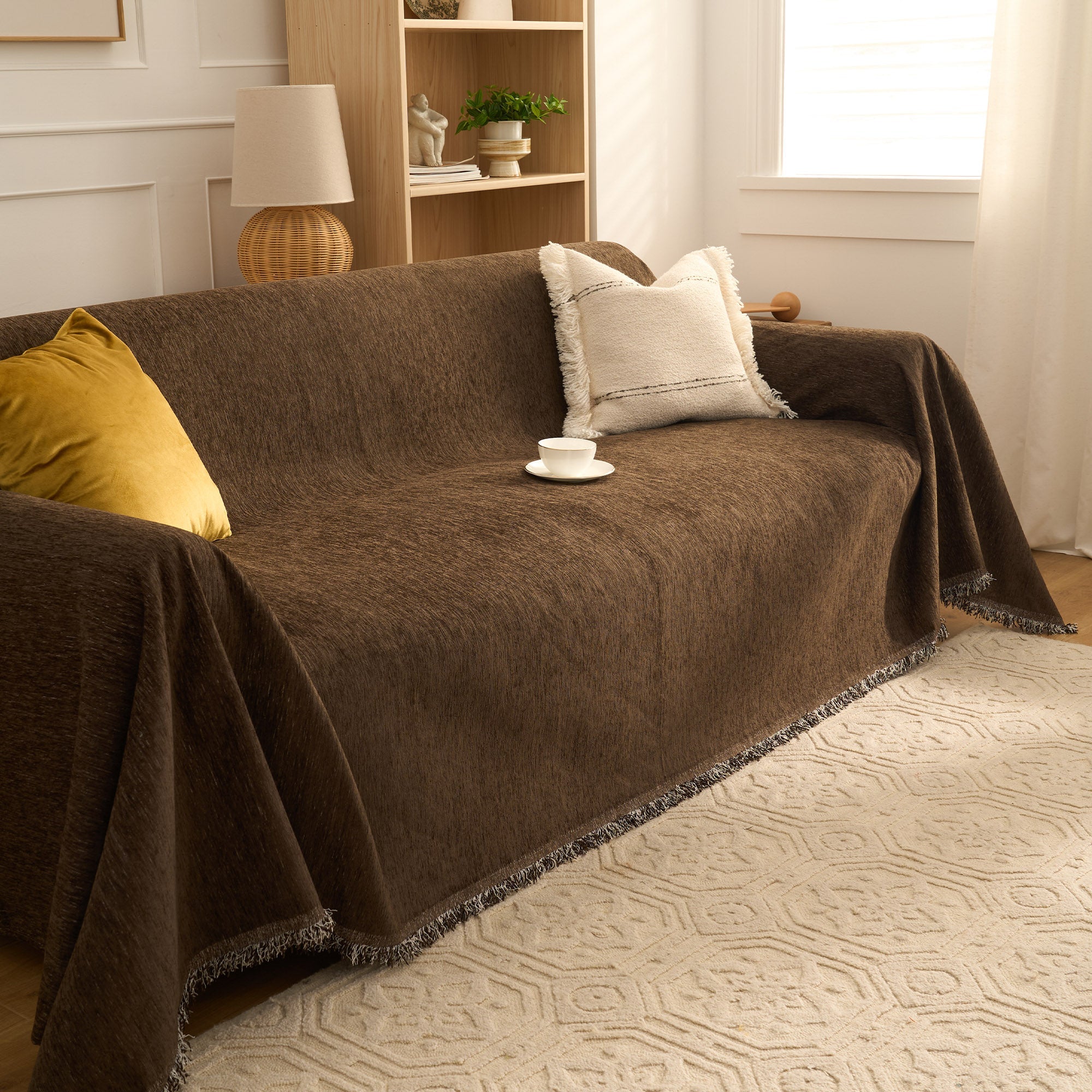 Elegante funda de sofá minimalista con velo suave y transpirable, elegante protección para un hogar acogedor, moderno y fácil de limpiar.