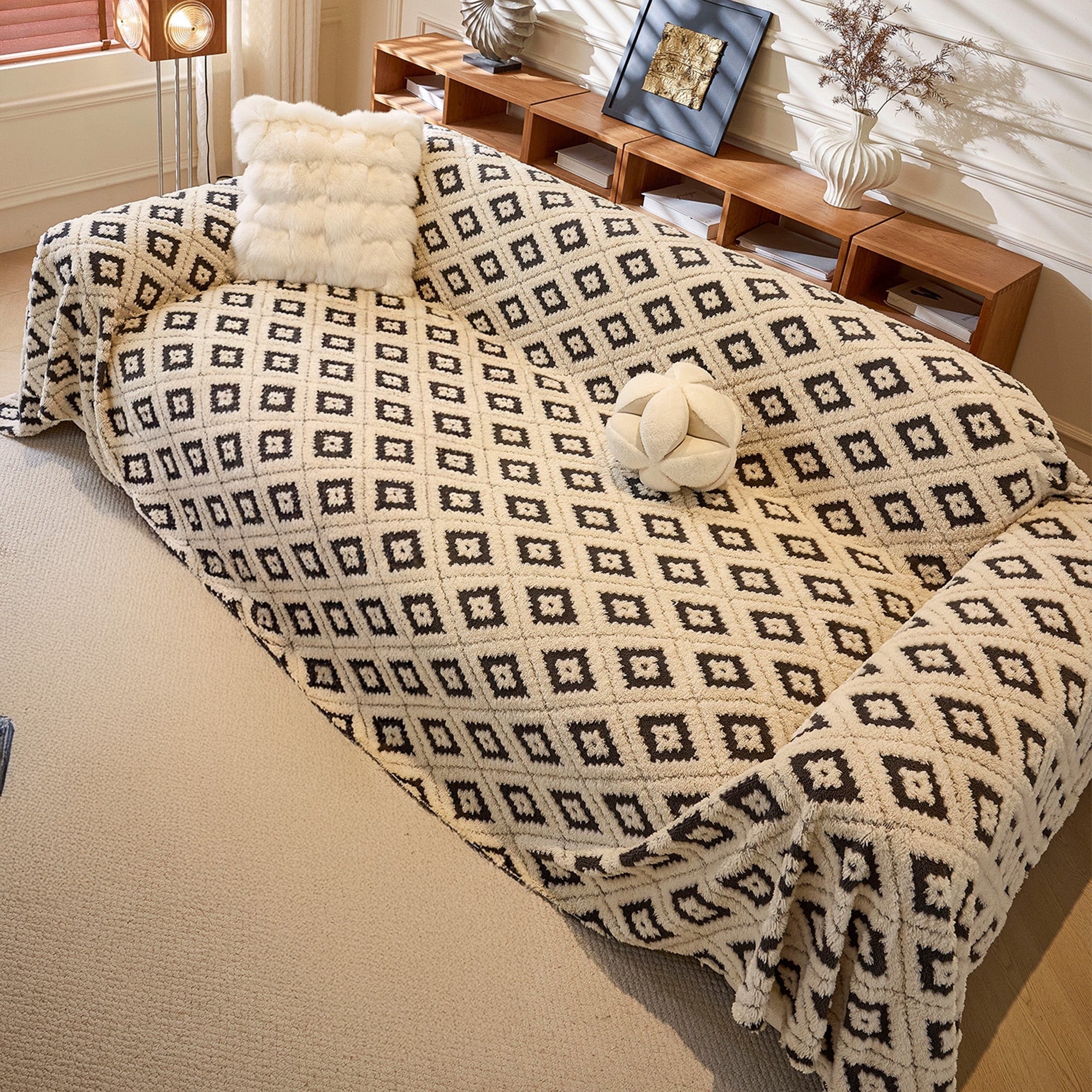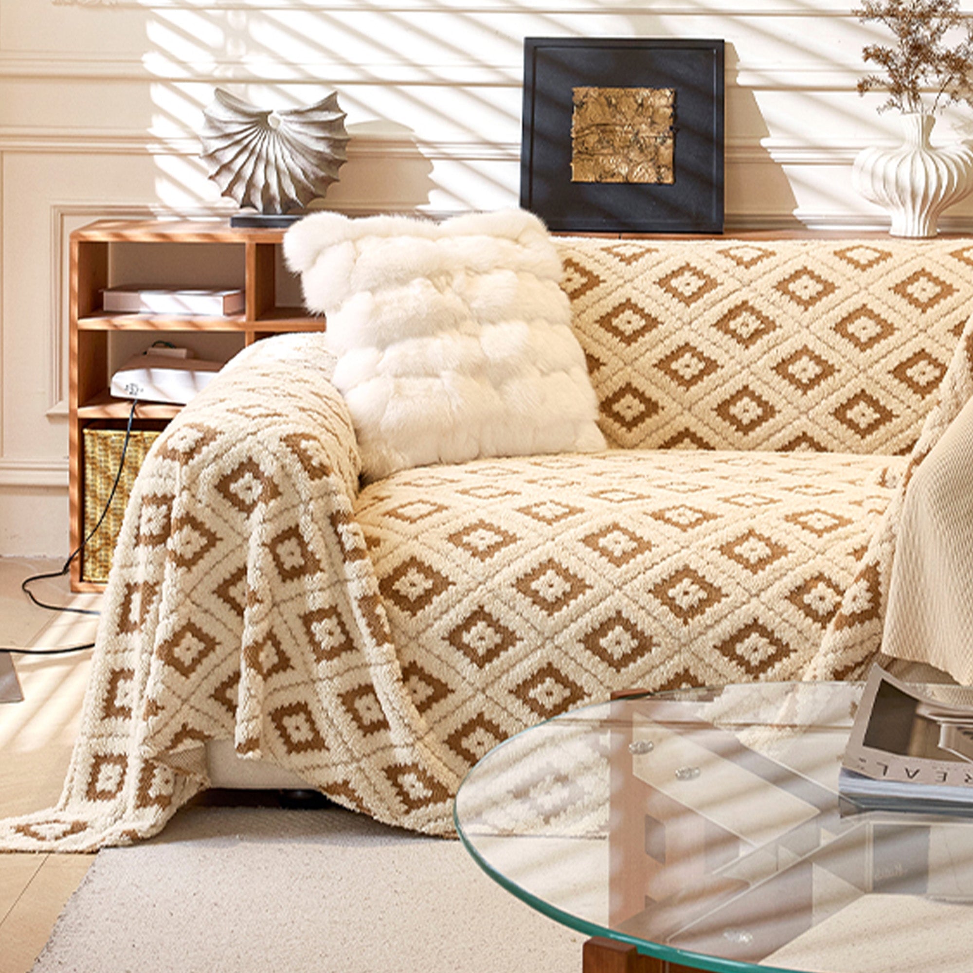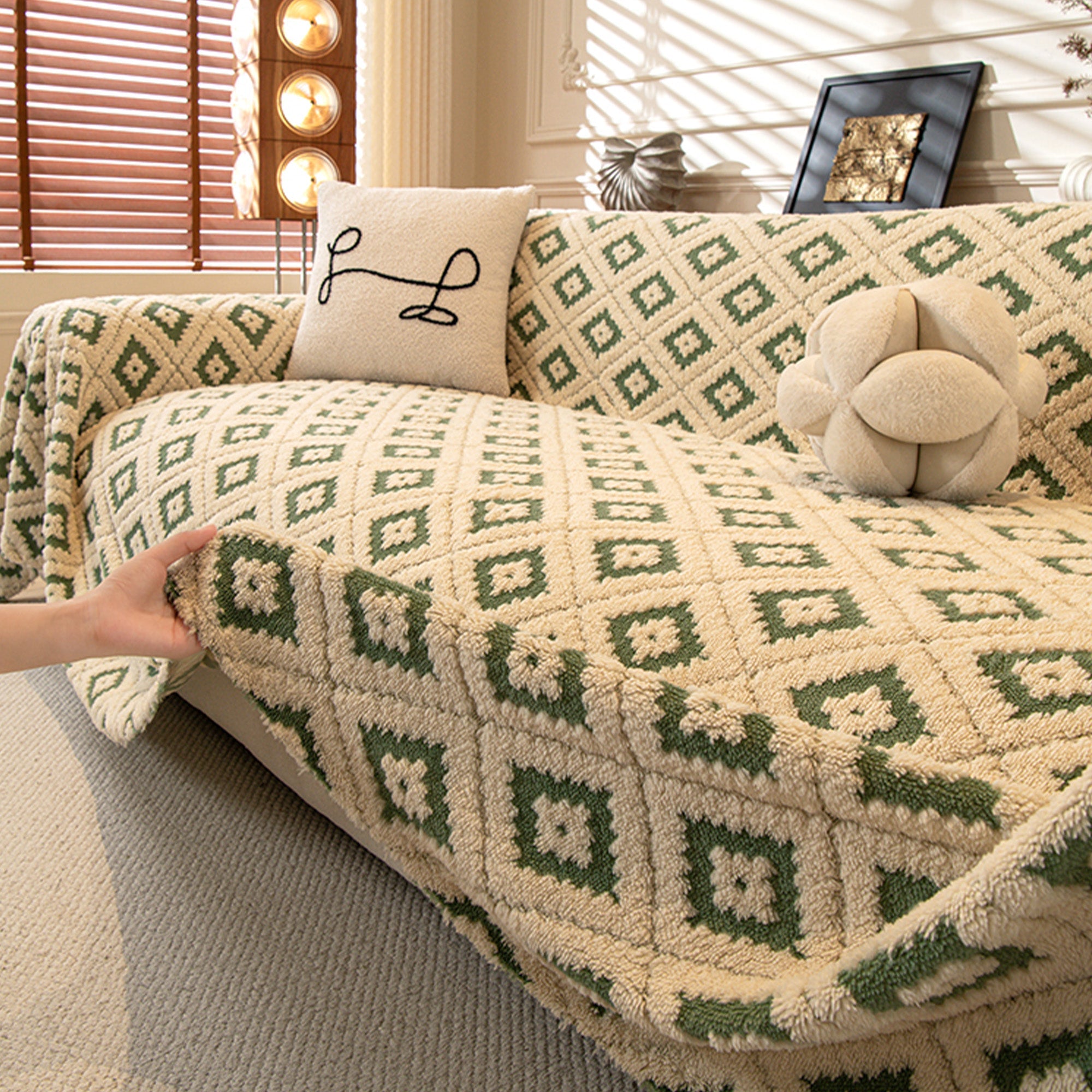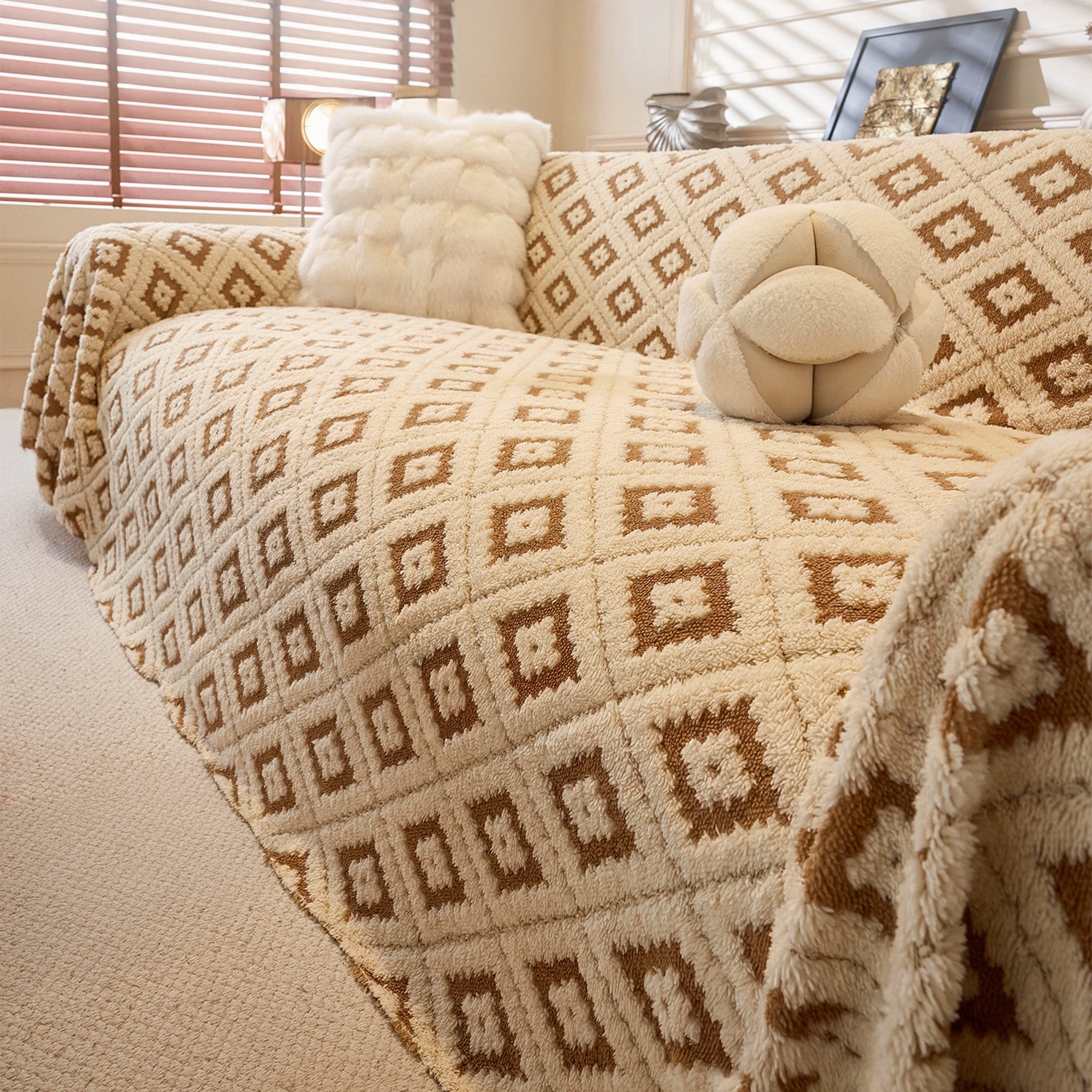 Elegante funda de sofá de felpa con diseño de diamantes resistente a los arañazos