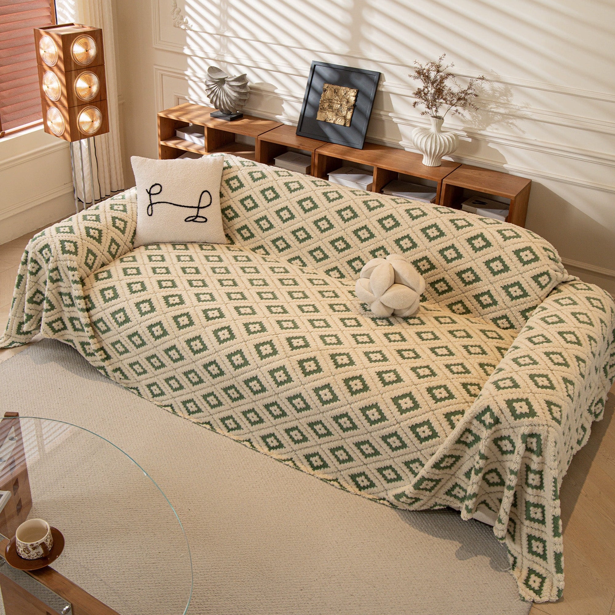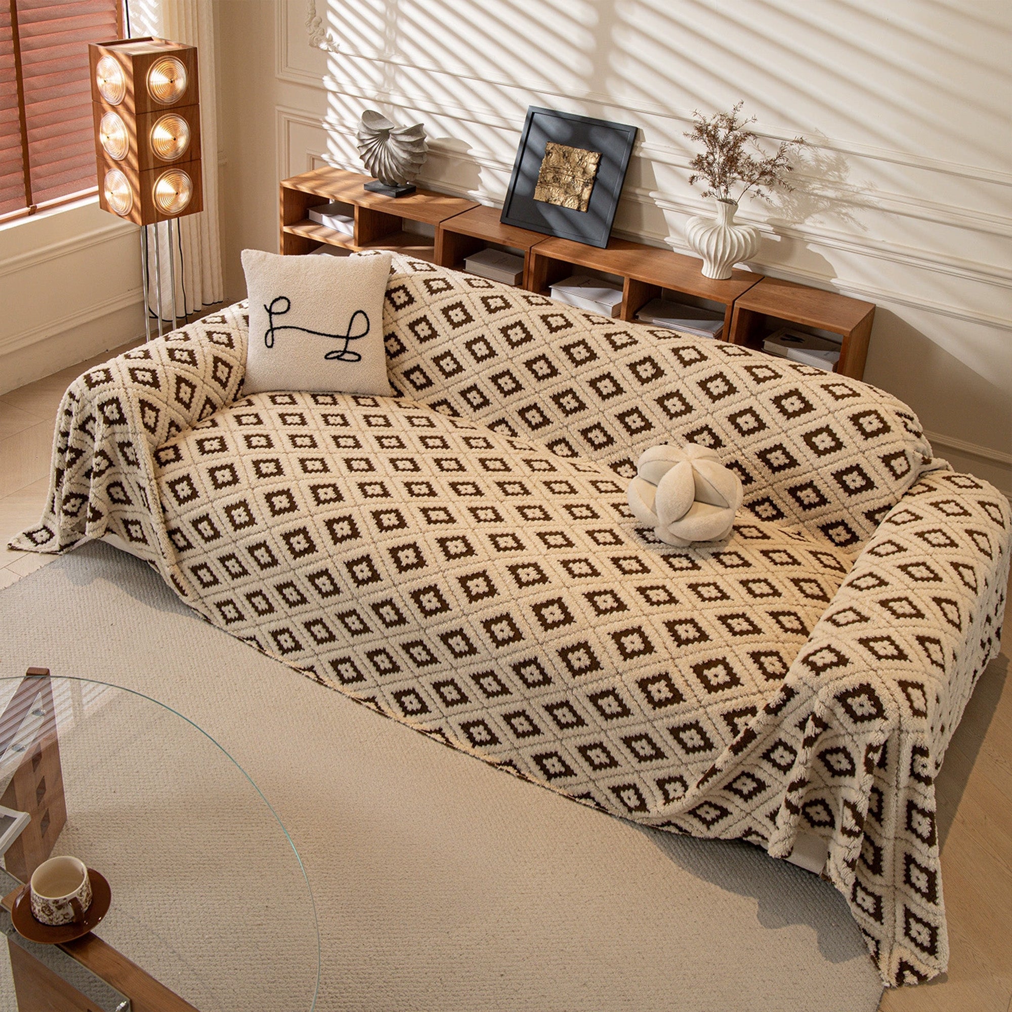 Envuelve tu sofá con la comodidad y el estilo moderno de nuestra acogedora funda de sofá antideslizante de felpa con rombos. El jacquard de rombos en relieve aporta una textura suntuosa, mientras que la tela de felpa gruesa y apta para mascotas protege del desgaste diario, el pelo y los arañazos. Suave al tacto y duradera, se mantiene en su lugar y realza tu espacio al instante.