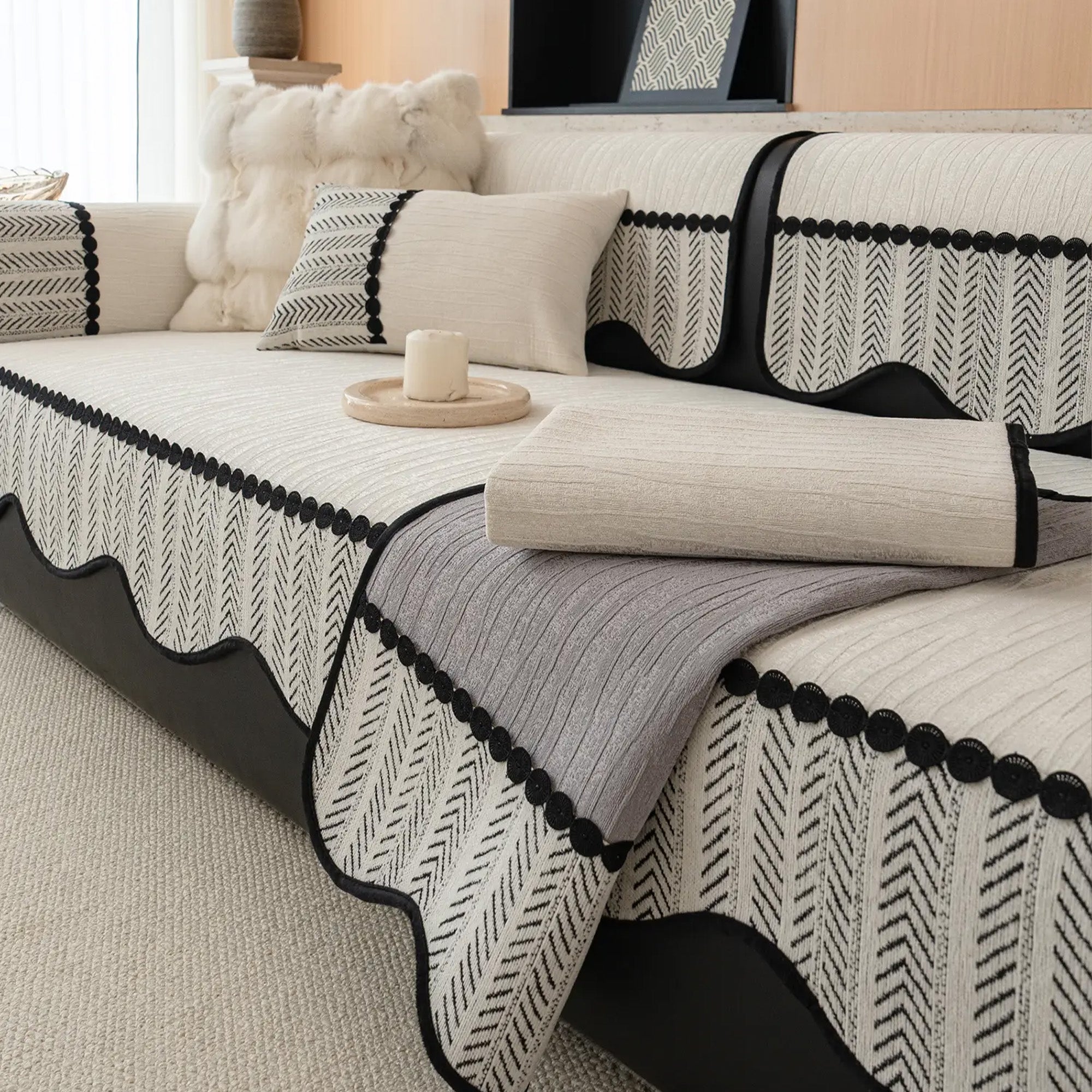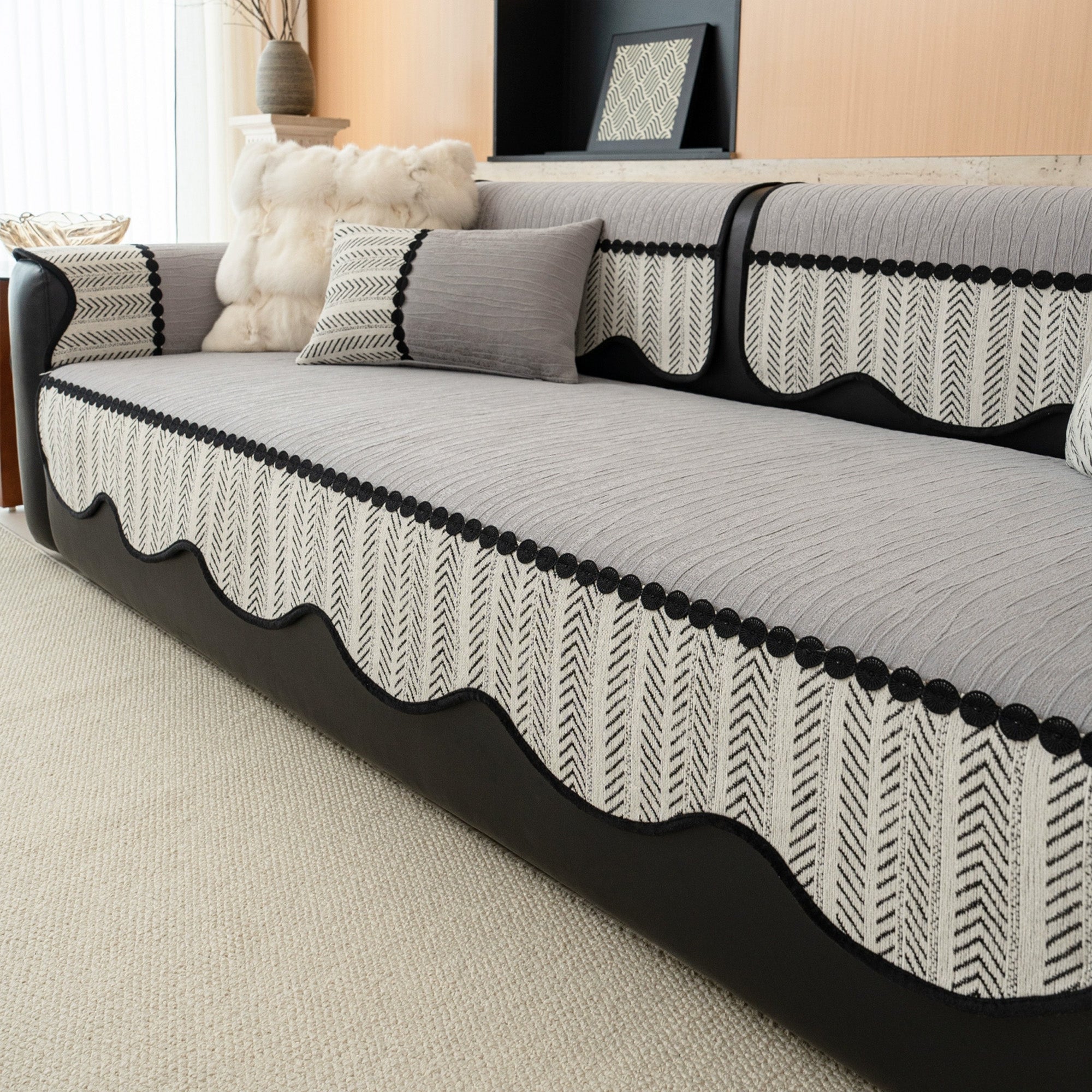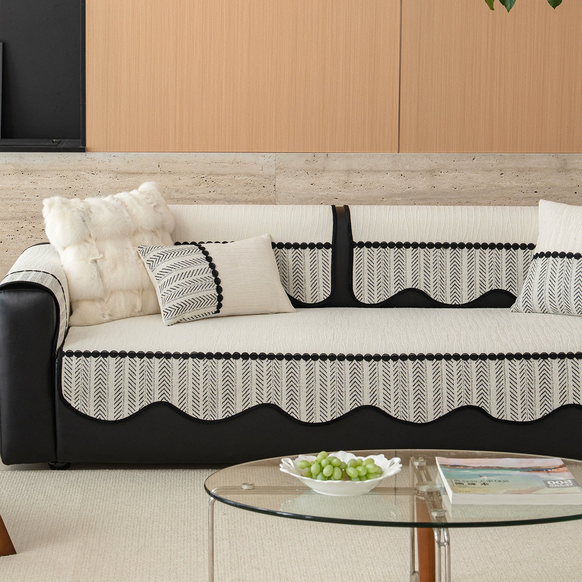 Realza la decoración de tu hogar con la funda de sofá antideslizante de jacquard con encanto geométrico, con un llamativo diseño inspirado en espiga y un llamativo borde negro. Su artístico estampado combina una elegancia atemporal con un toque moderno, creando un elegante punto focal para cualquier sala de estar. Confeccionada con tejido jacquard de primera calidad, esta funda ofrece durabilidad y comodidad, además de una fiable función antideslizante. Perfecta para proteger tu sofá del desgaste diario, el pelo de las mascotas o los derrames, se integra a la perfección tanto en interiores contemporáneos como clásicos.