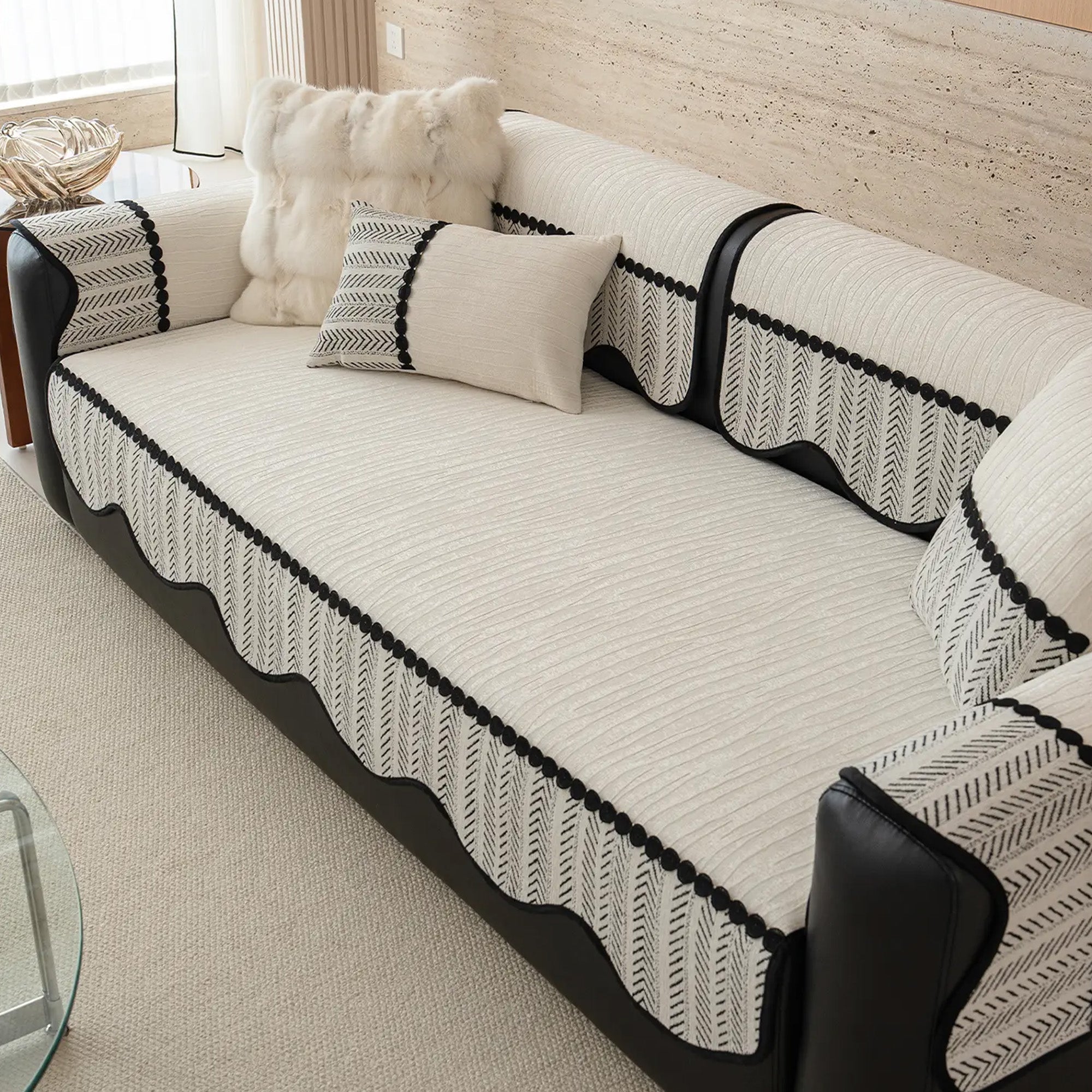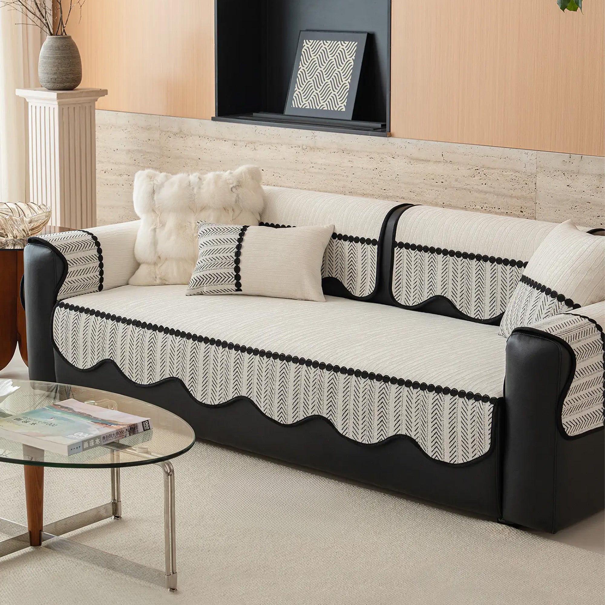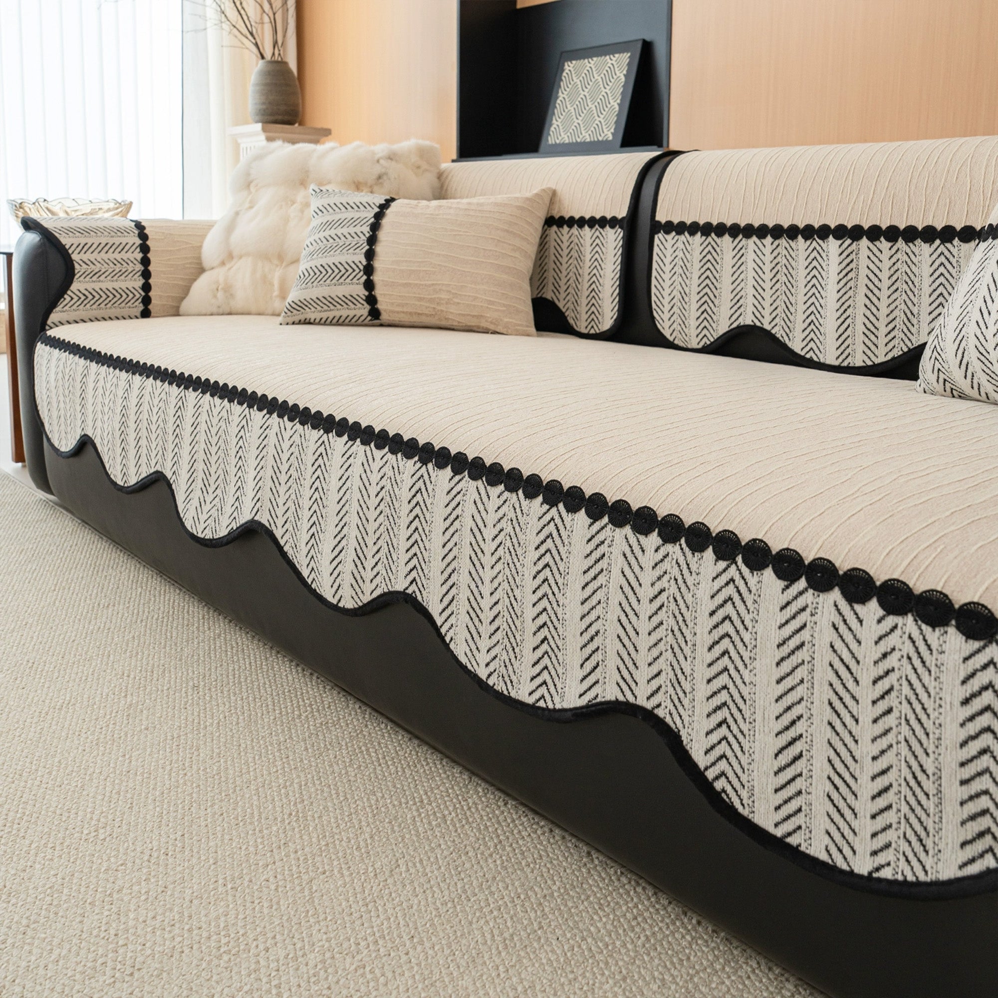 Realza la decoración de tu hogar con la funda de sofá antideslizante de jacquard con encanto geométrico, con un llamativo diseño inspirado en espiga y un llamativo borde negro. Su artístico estampado combina una elegancia atemporal con un toque moderno, creando un elegante punto focal para cualquier sala de estar. Confeccionada con tejido jacquard de primera calidad, esta funda ofrece durabilidad y comodidad, además de una fiable función antideslizante. Perfecta para proteger tu sofá del desgaste diario, el pelo de las mascotas o los derrames, se integra a la perfección tanto en interiores contemporáneos como clásicos.