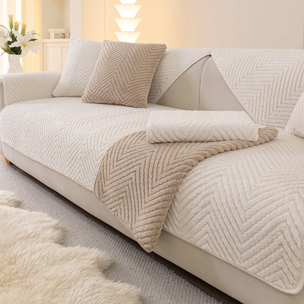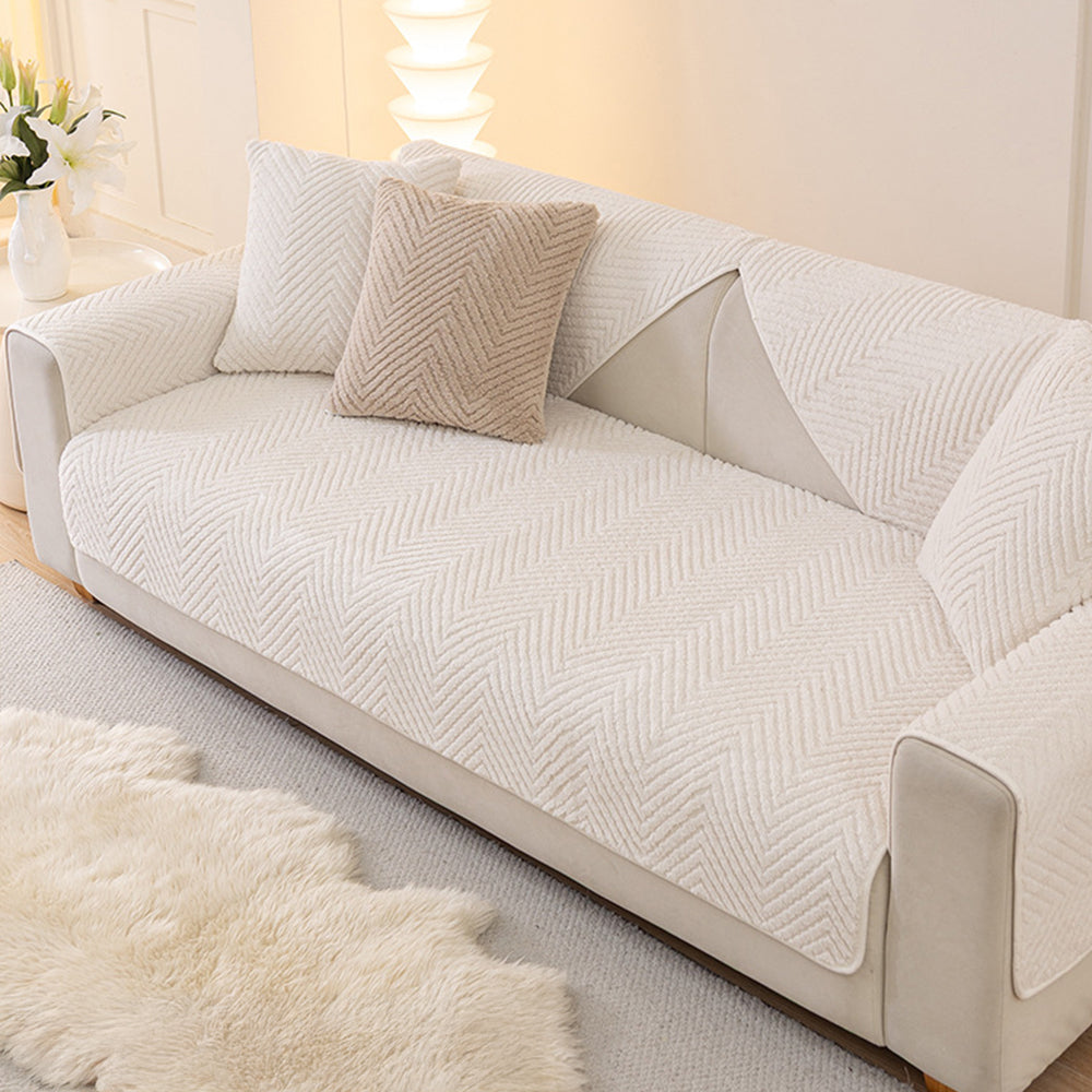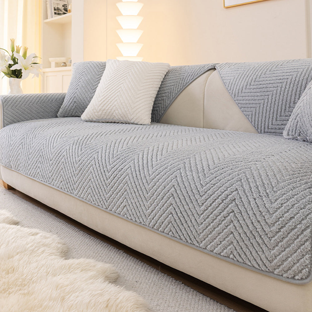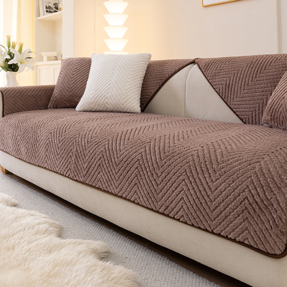 Funda de sofá antideslizante de felpa con diseño de espiga