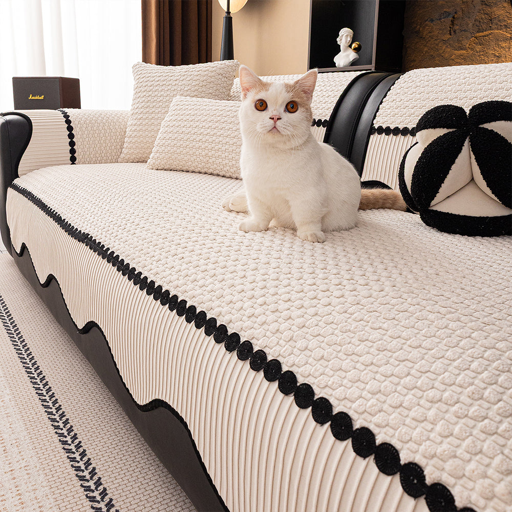 Funda de sofá elástica WaveLuxe Ripple: protección integral para mascotas, antiarañazos