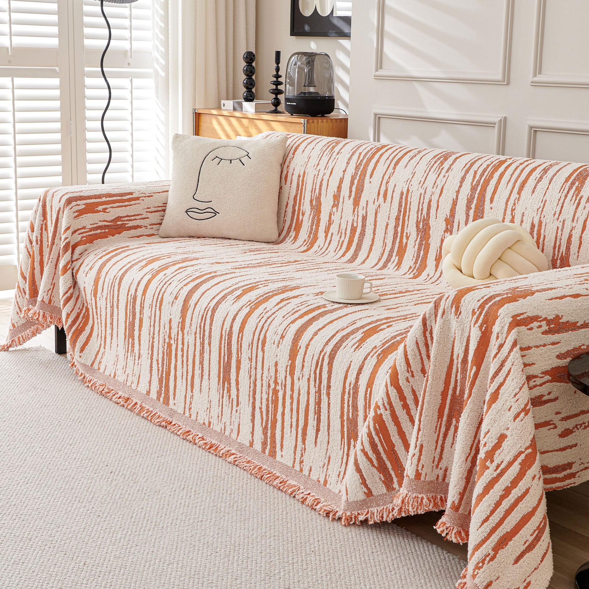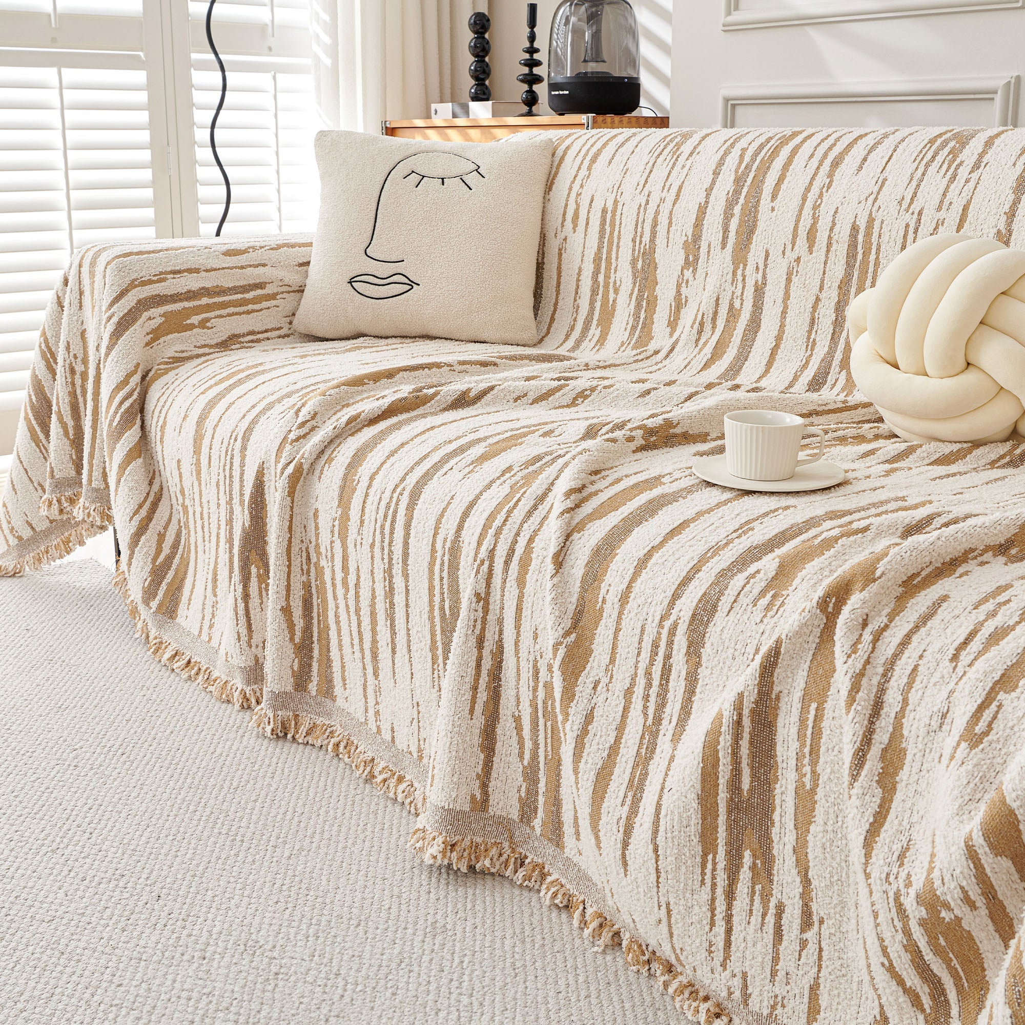 Elegante funda de sofá minimalista con velo suave y transpirable, elegante protección para un hogar acogedor, moderno y fácil de limpiar.