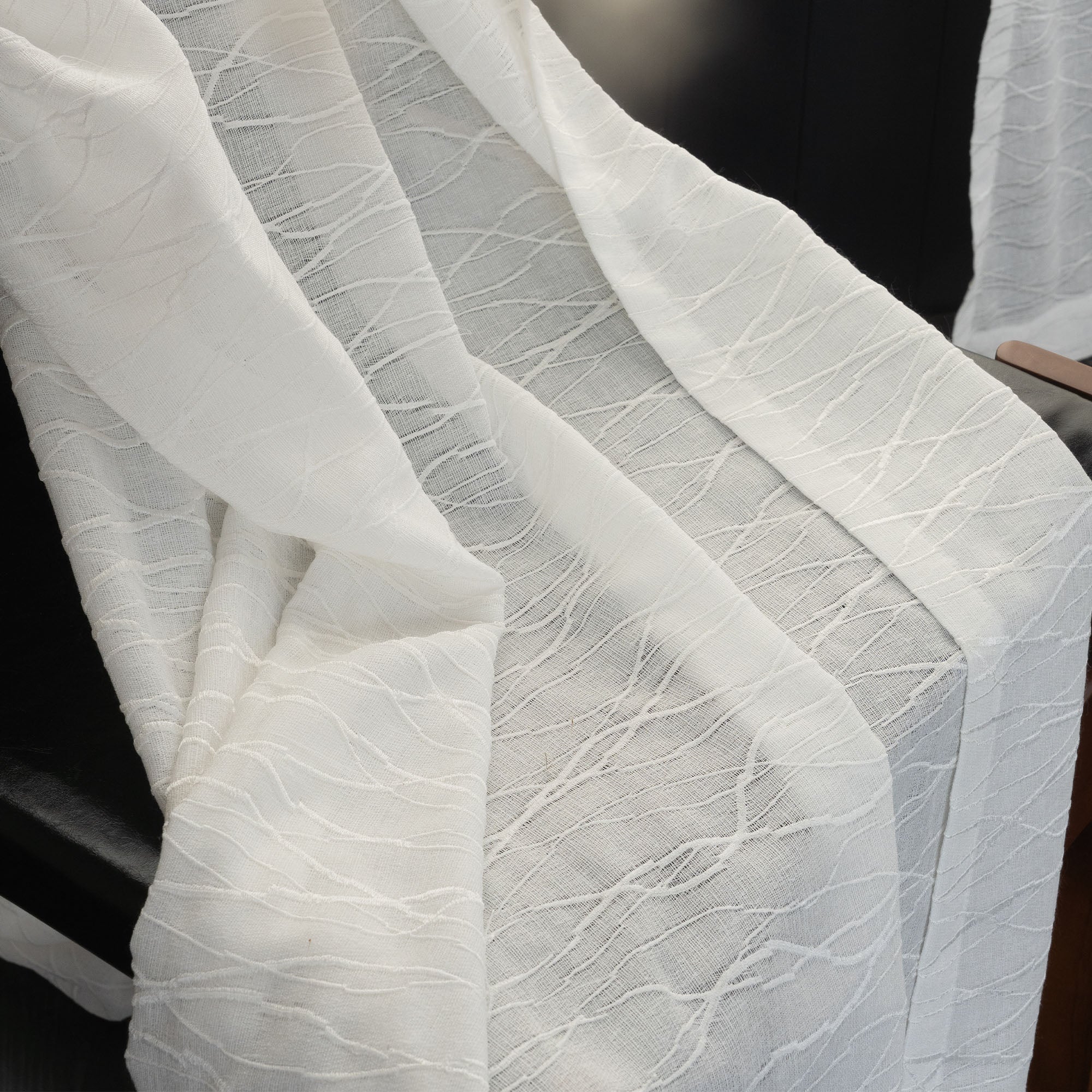 Realce sus interiores con la cortina translúcida bordada Ripple Whisper, donde la delicada artesanía se fusiona con una sofisticación etérea. Confeccionada con tela translúcida de primera calidad, esta cortina presenta un intrincado bordado inspirado en el delicado ritmo de las ondas del agua, aportando un encanto sereno y contemporáneo a su espacio. Su textura ligera y translúcida difunde suavemente la luz solar, creando un ambiente cálido y acogedor a la vez que ofrece una sutil capa de privacidad.