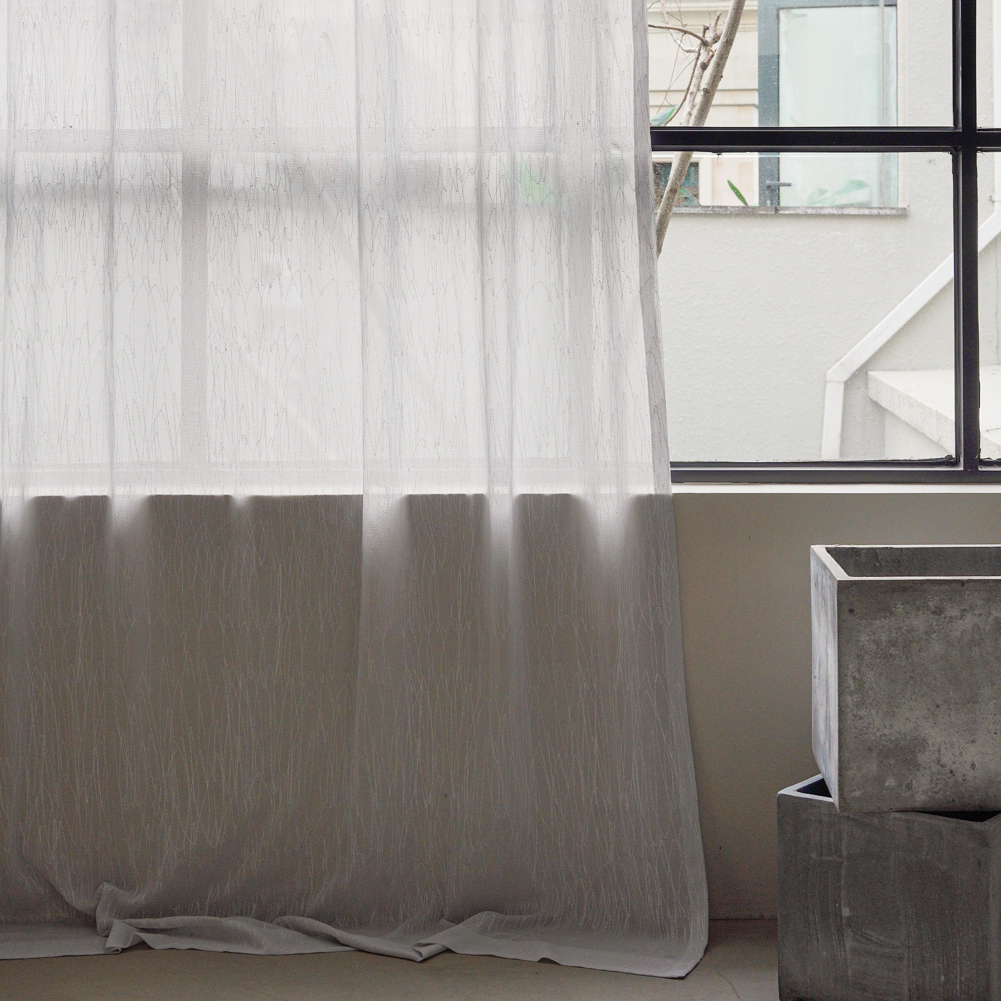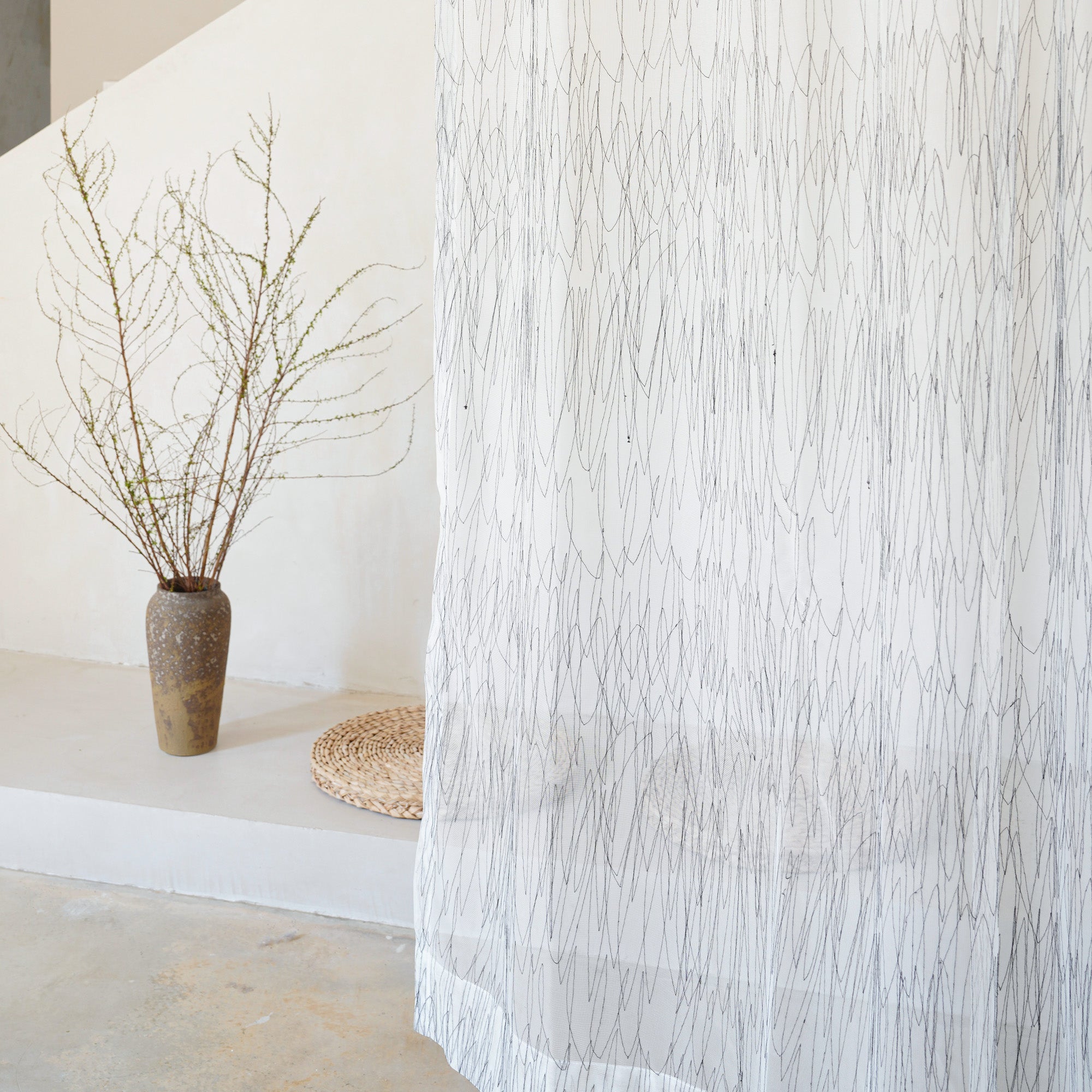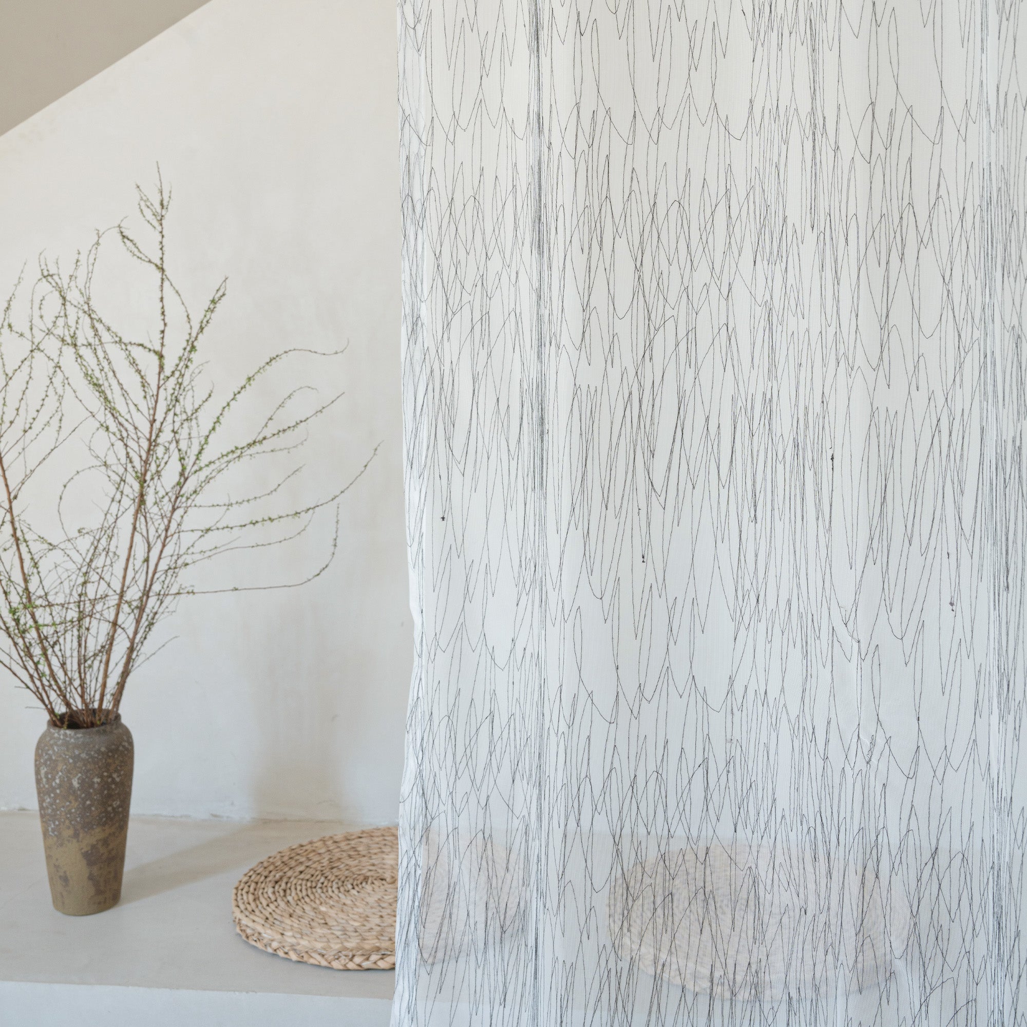Dale un toque artístico y moderno a tus interiores con la cortina transparente bordada Scribble Stream, que combina un movimiento lineal alegre con una suave elegancia. Confeccionada con una tela vaporosa y transparente, filtra suavemente la luz solar, creando una cálida y acogedora luz a la vez que mantiene una sutil privacidad. Su intrincado bordado, que simula líneas de garabatos fluidos, aporta un encanto dinámico y contemporáneo que complementa tanto espacios minimalistas como eclécticos. Perfecta para salas de estar, dormitorios o estudios creativos, su diseño caprichoso y refinado convierte tus ventanas en una declaración de estilo.
