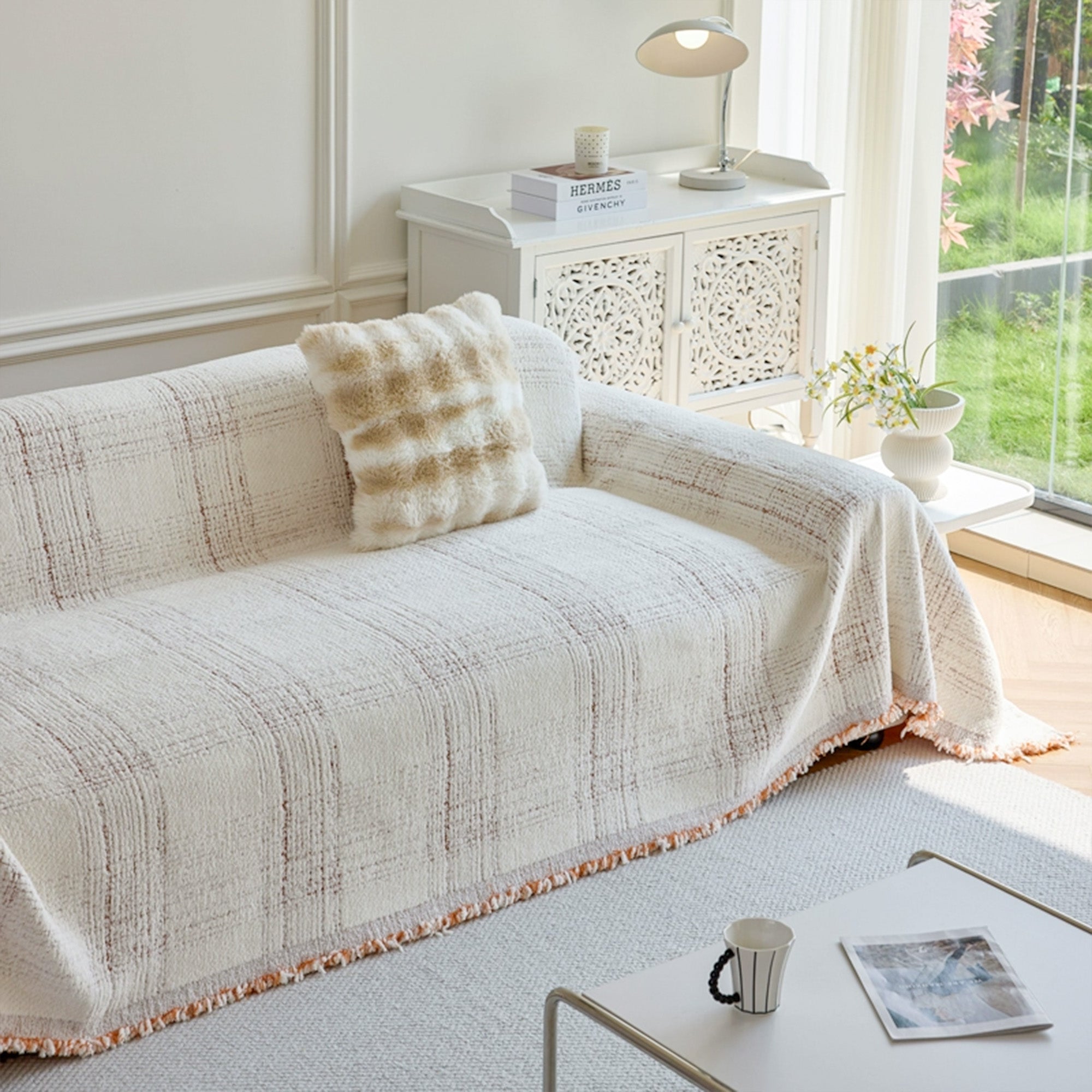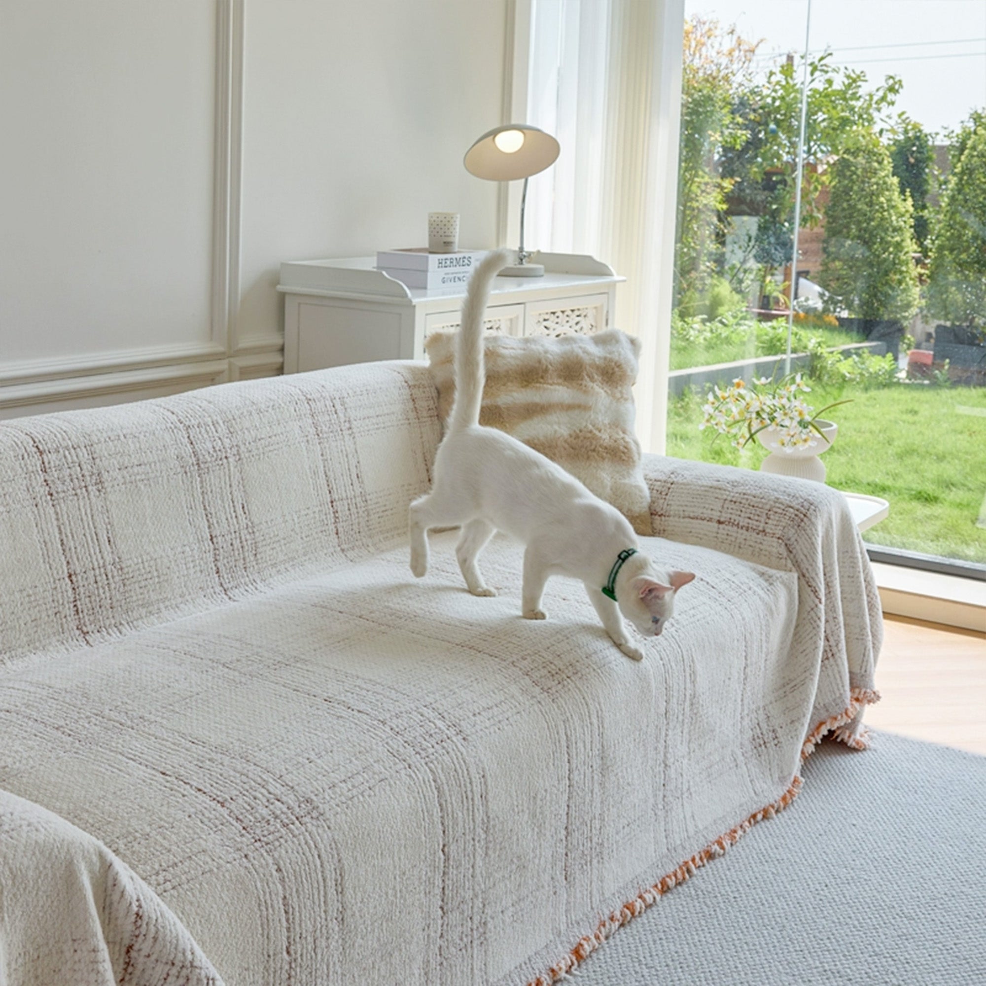 Funda de sofá de lujo con borlas y diseño de espiga que admite mascotas