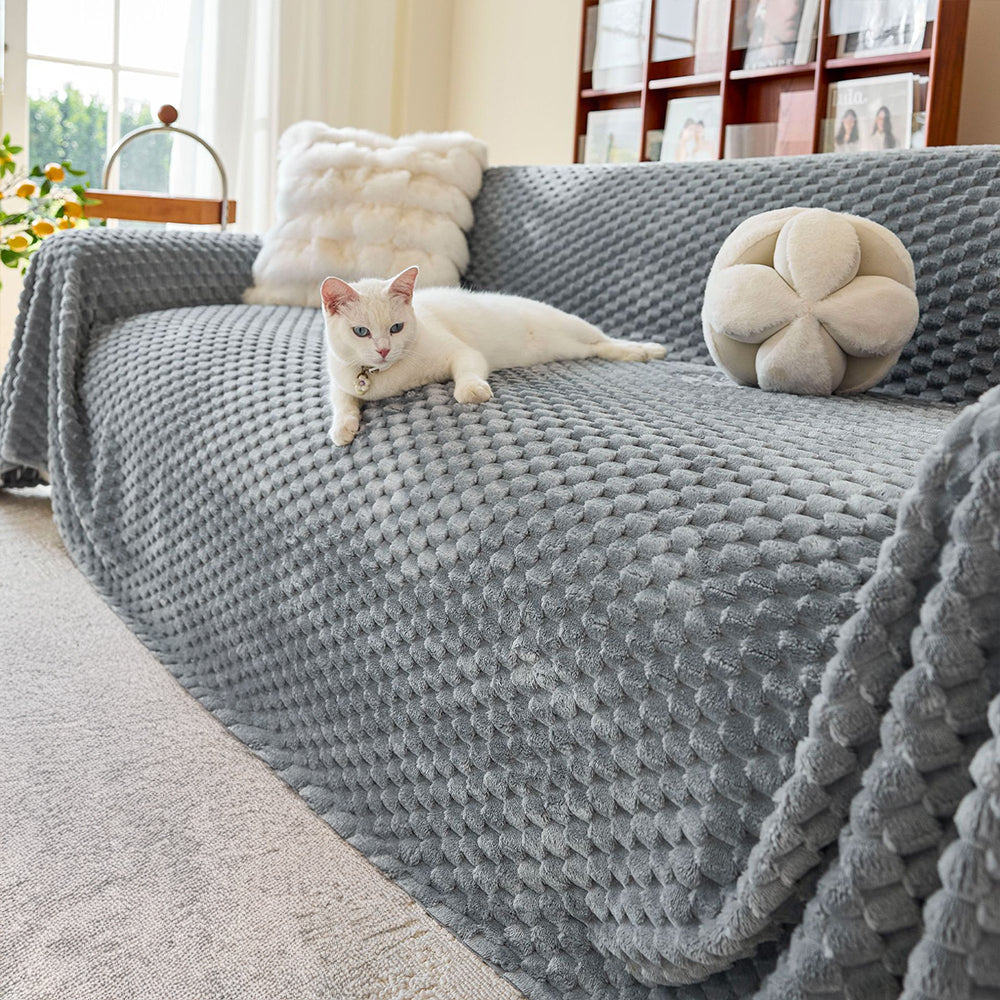 Mejora la protección y el confort de tus sofás con la funda antideslizante Plush Shield. Diseñada para sofás de hasta 230 cm de ancho y perfecta para el invierno, su suave felpa de burbujas ofrece una sensación de máxima suavidad, mientras que su base antideslizante con puntos mantiene todo en su lugar. Resistente a arañazos y apta para mascotas, protege tus sofás de piel o tela del pelo de animales, derrames y el desgaste diario, sin deslizarse ni arrugarse.