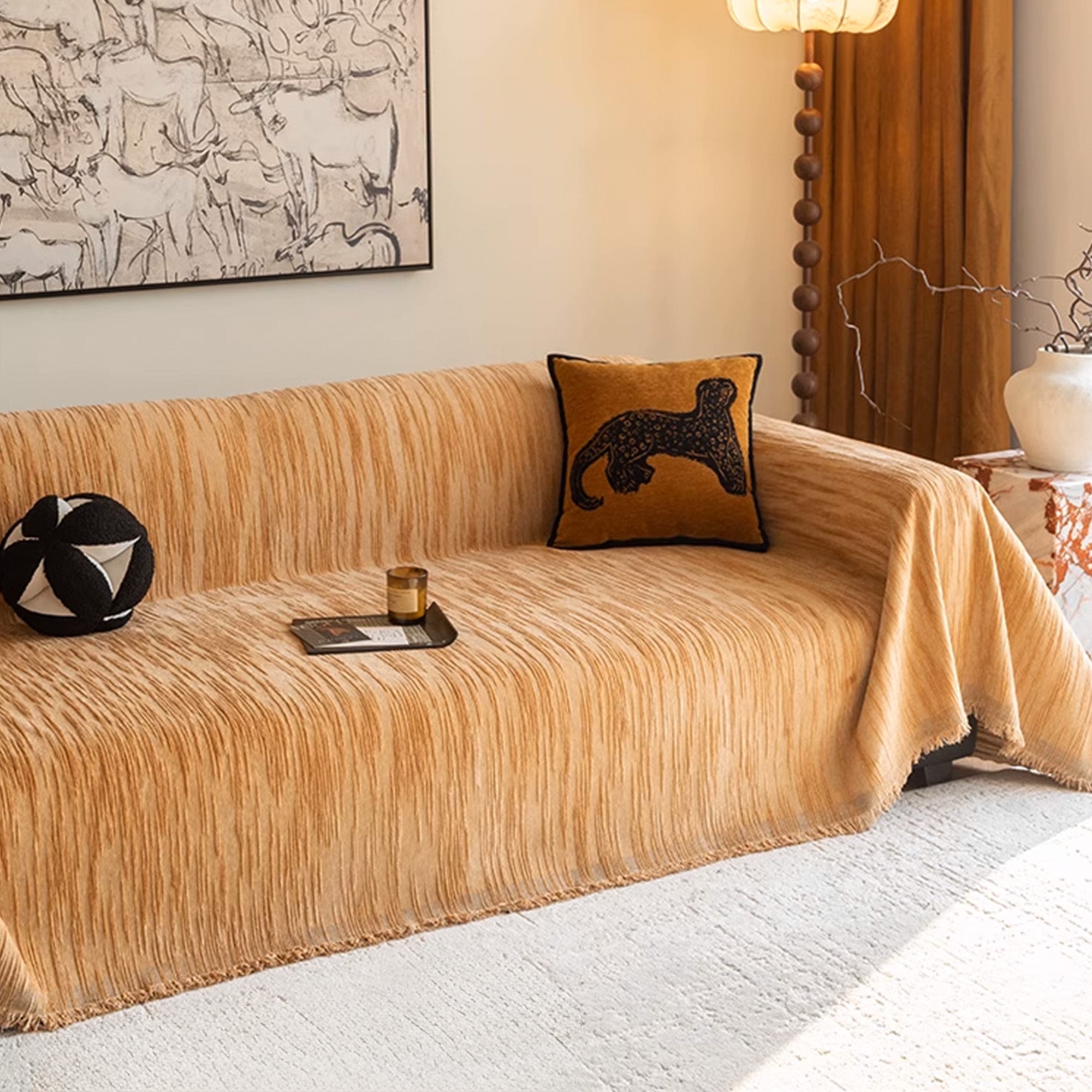 Funda de sofá de lujo con borlas y diseño de espiga que admite mascotas