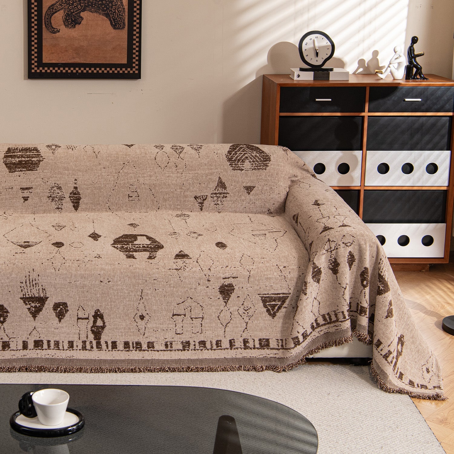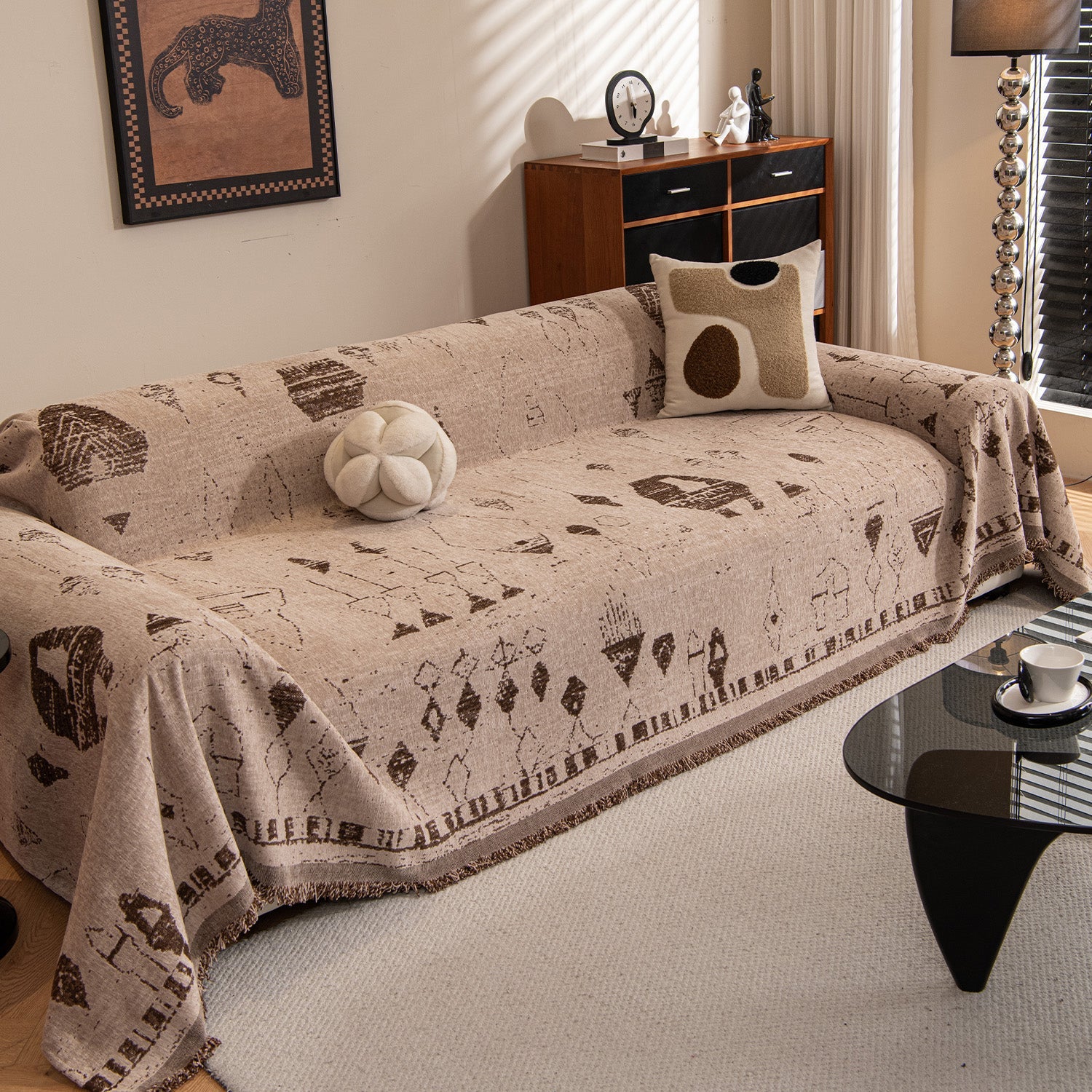 Su intrincada textura geométrica realza el atractivo visual y se integra a la perfección con estilos de decoración modernos, retro o minimalistas. Fácil de limpiar y diseñada para una larga vida útil, esta funda mantiene tu sofá impecable, elegante y bien protegido.