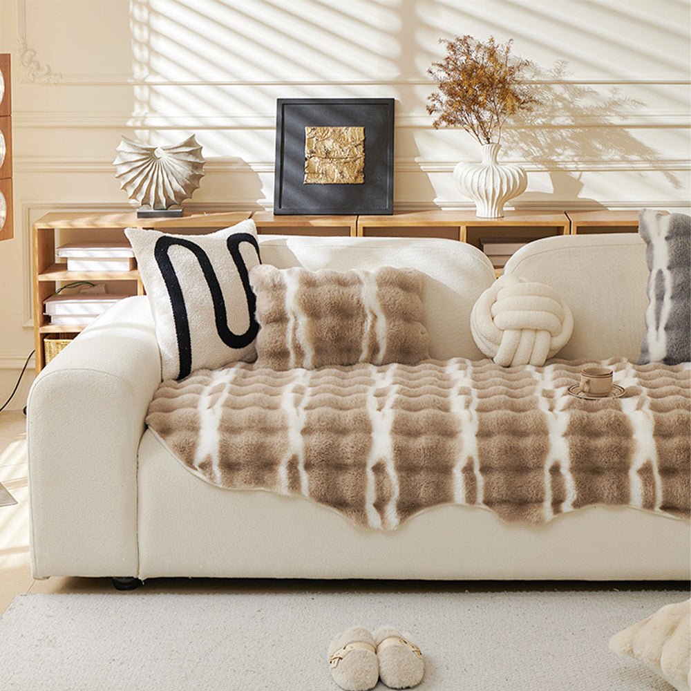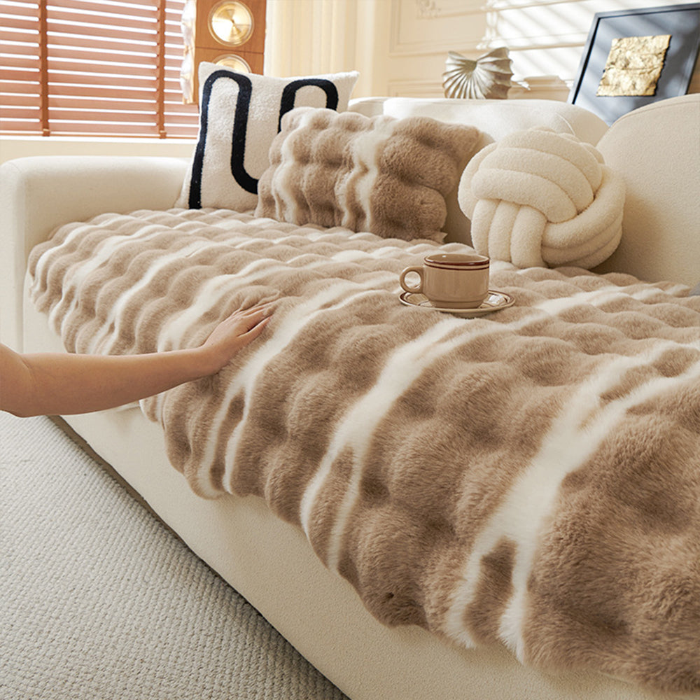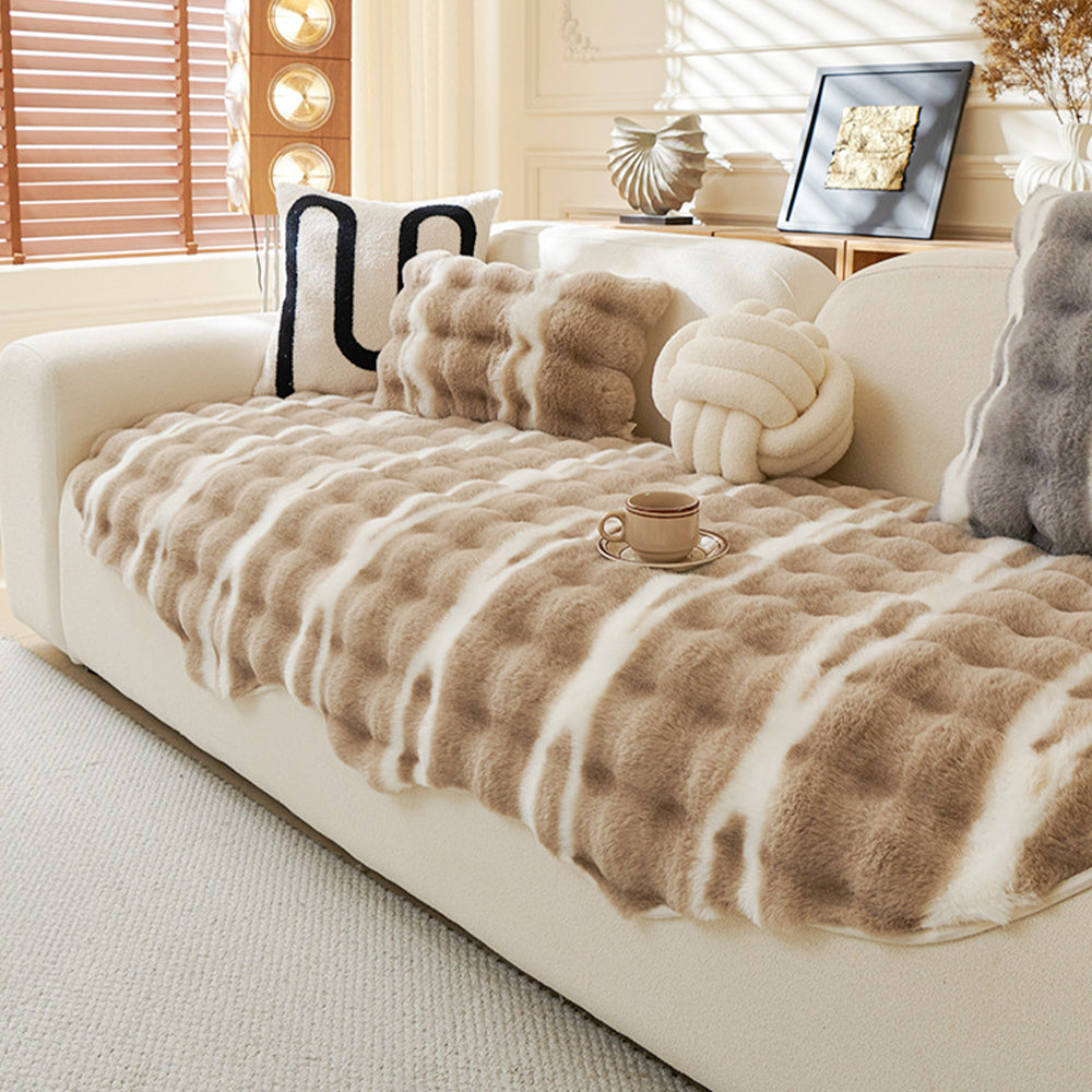 Funda de sofá antideslizante de felpa irregular con diseño de conejo sintético de invierno