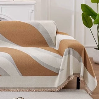 Funda de sofá multiusos de chenilla monocromática con flecos y estilo bohemio chic: protección suave para un hogar sin complicaciones.
