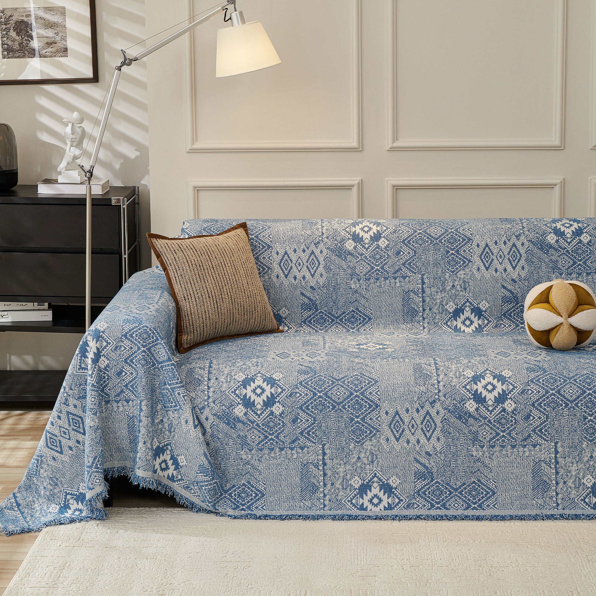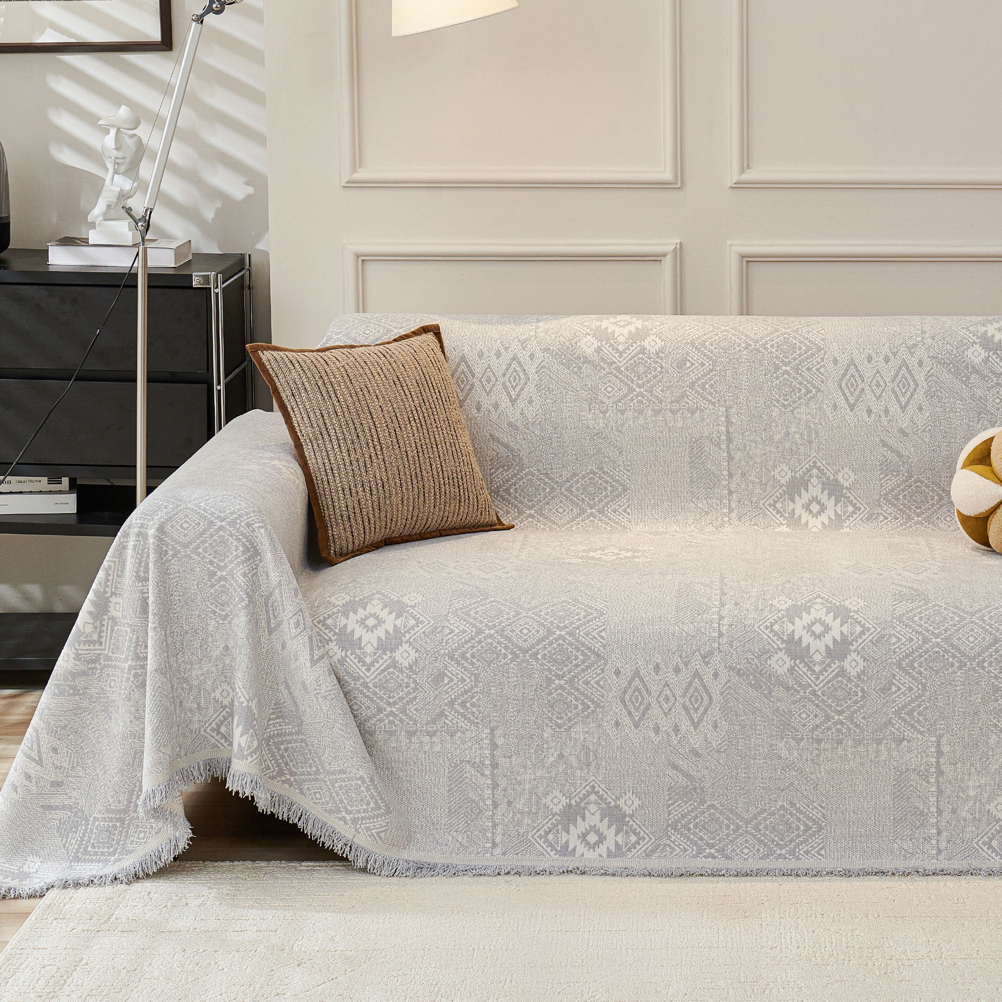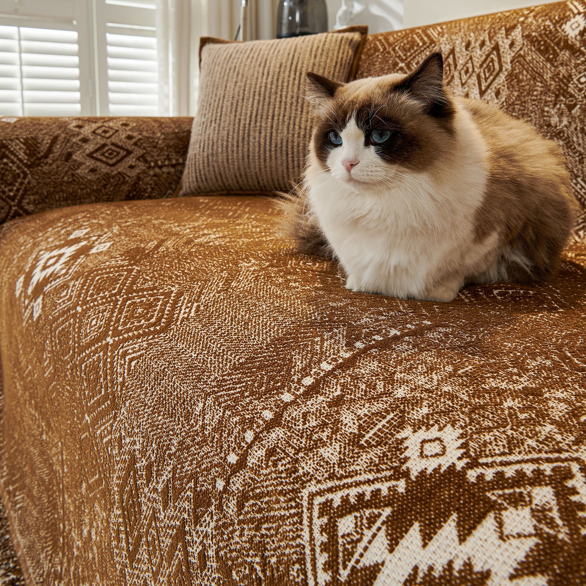 Funda de sofá vintage minimalista multiusos, apta para mascotas, con diseño tribal gemométrico en tonos pastel suaves