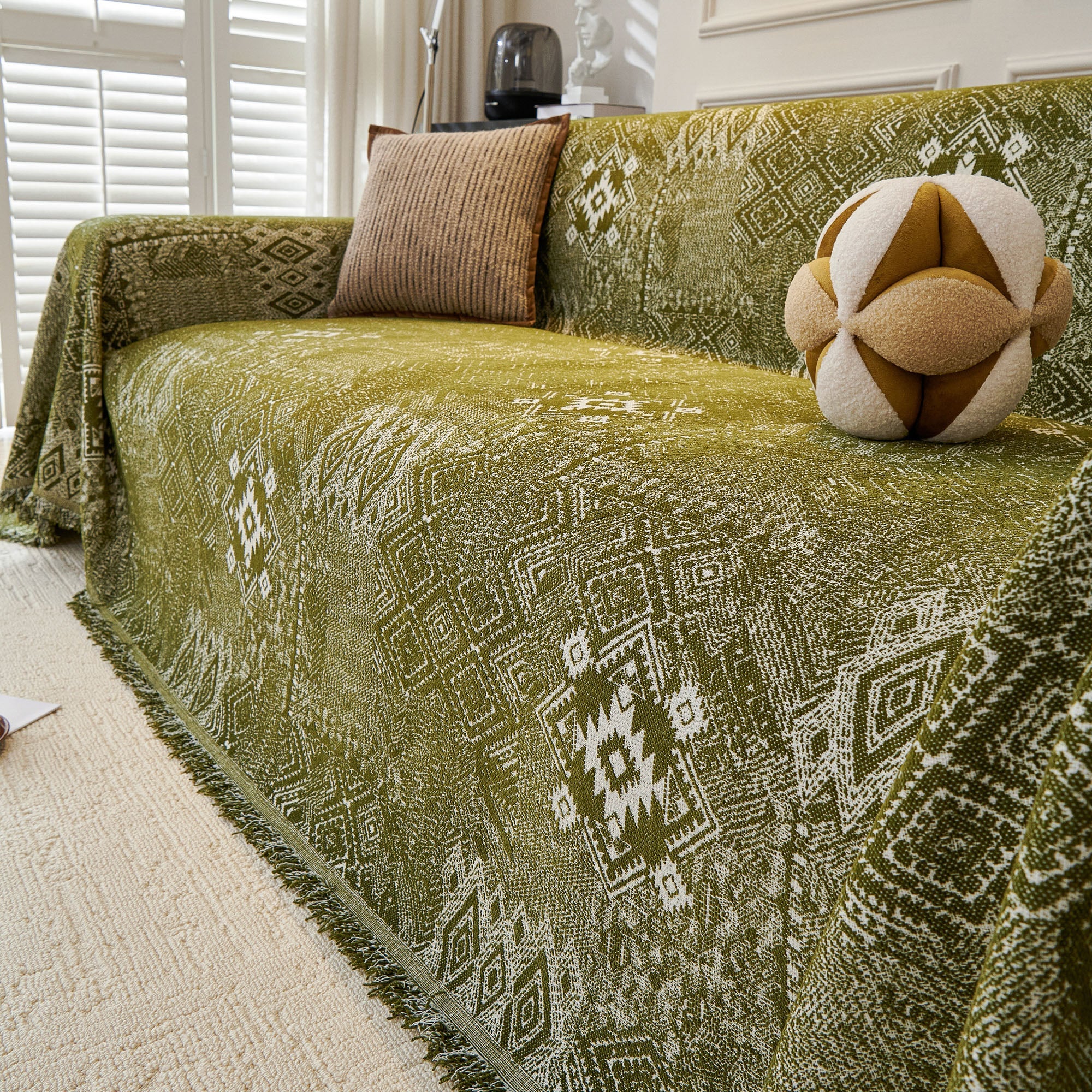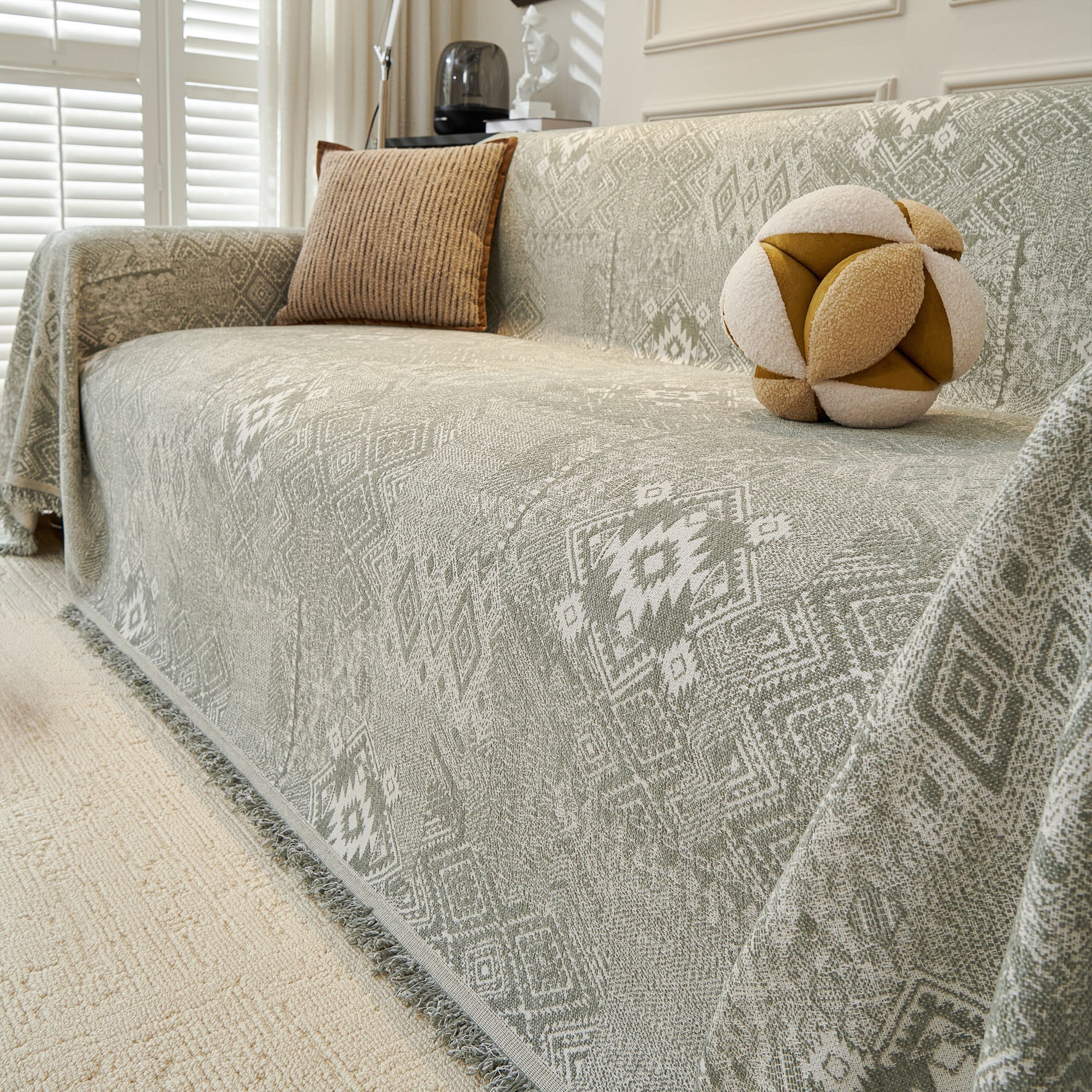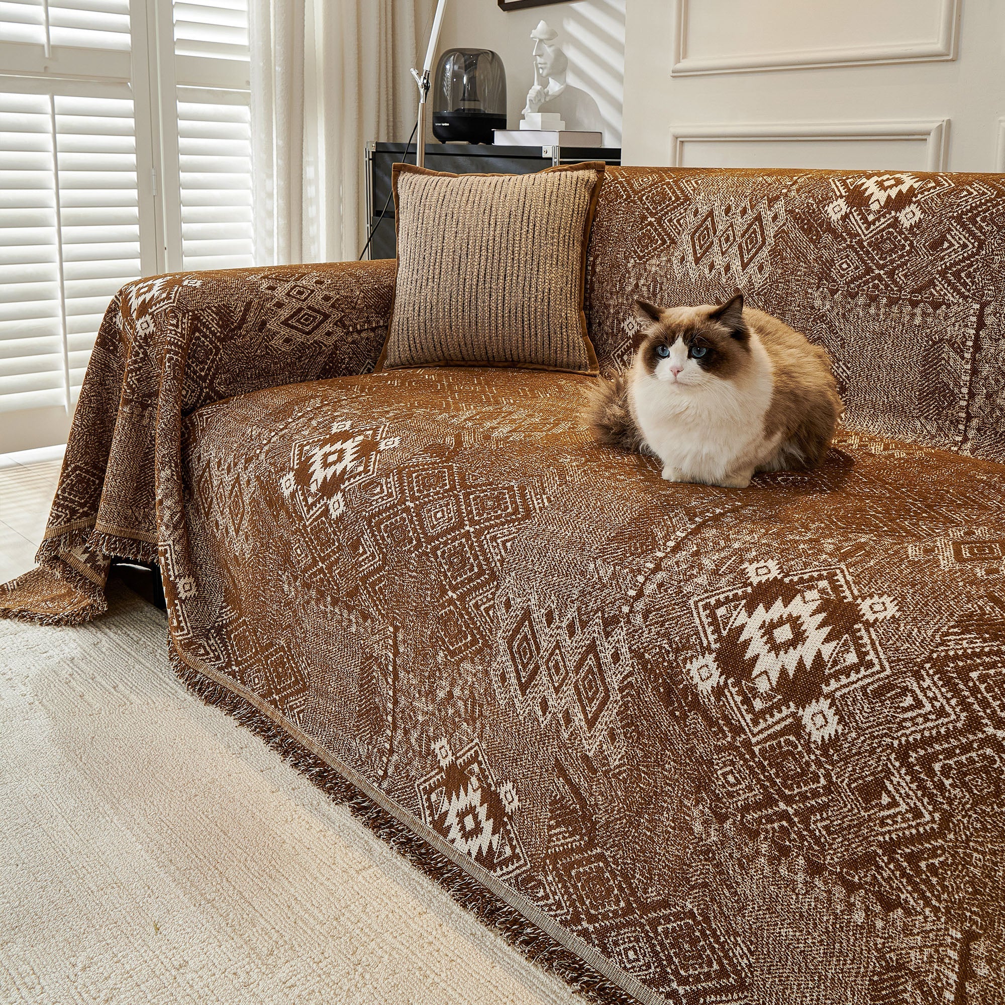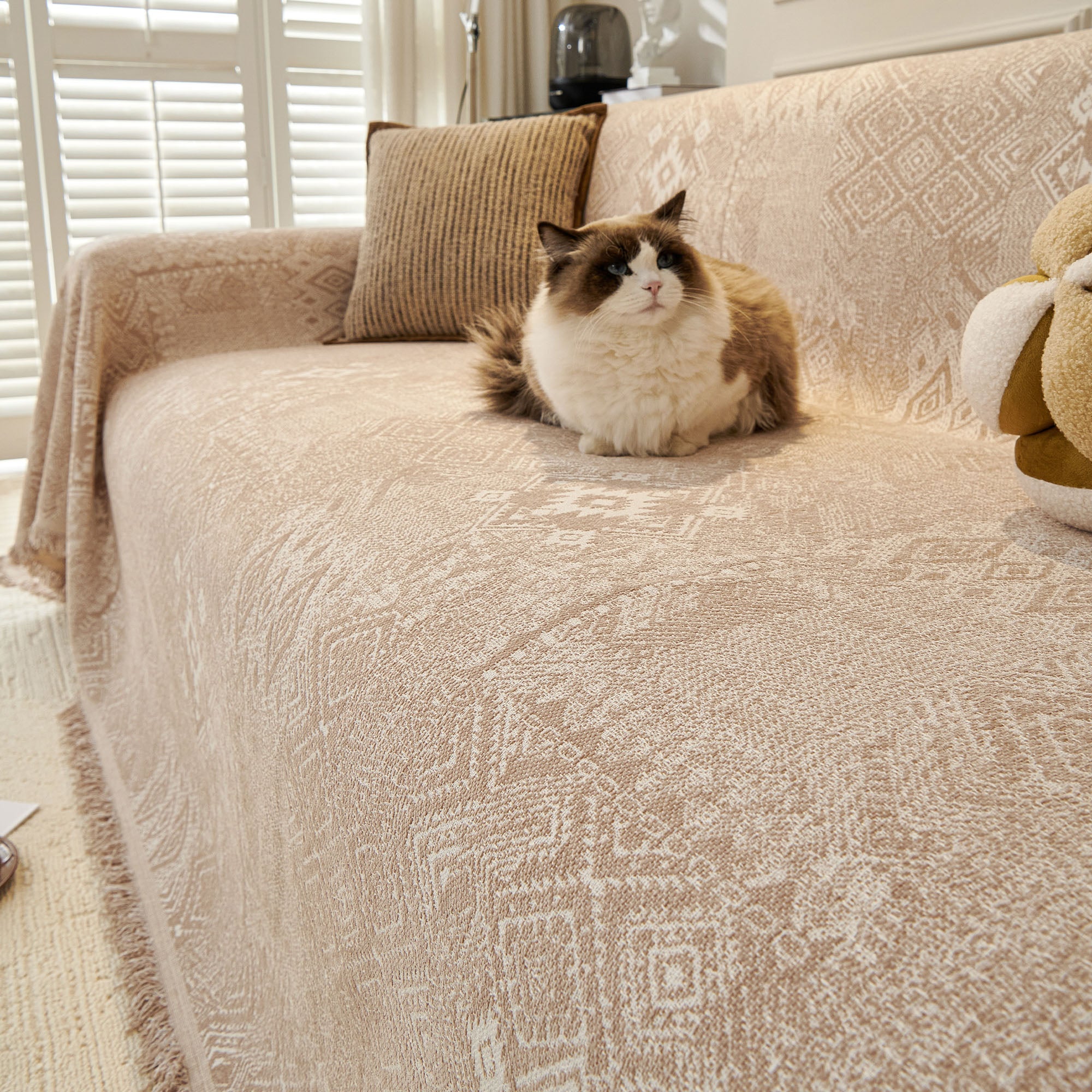 Funda de sofá de lujo con borlas y diseño de espiga que admite mascotas