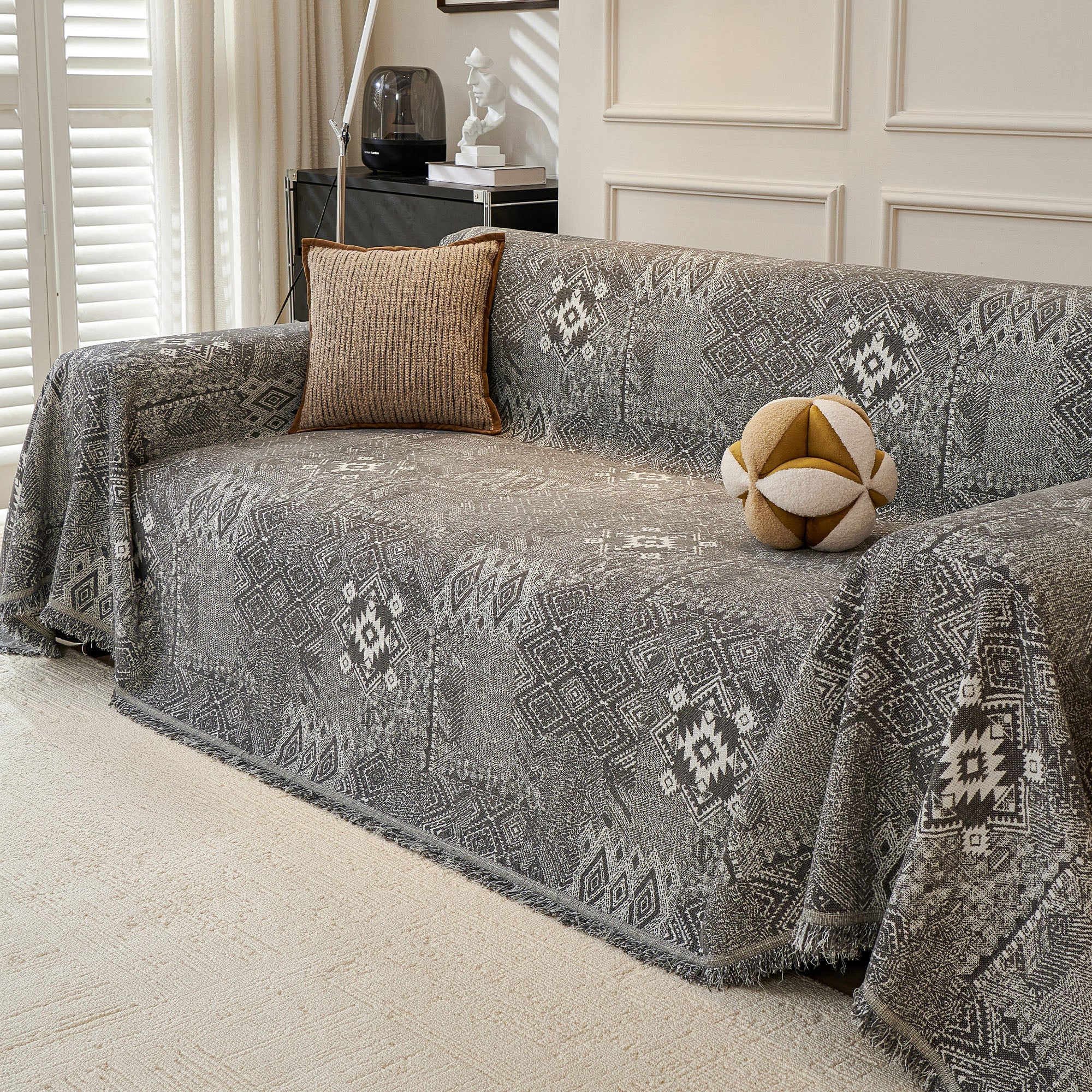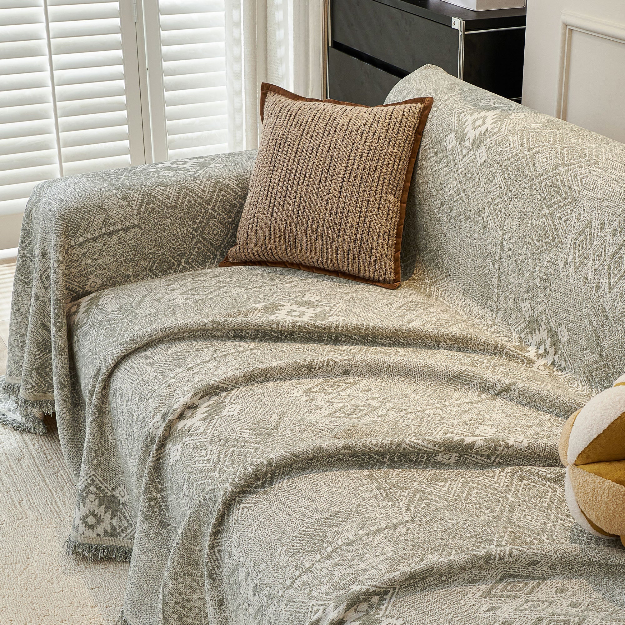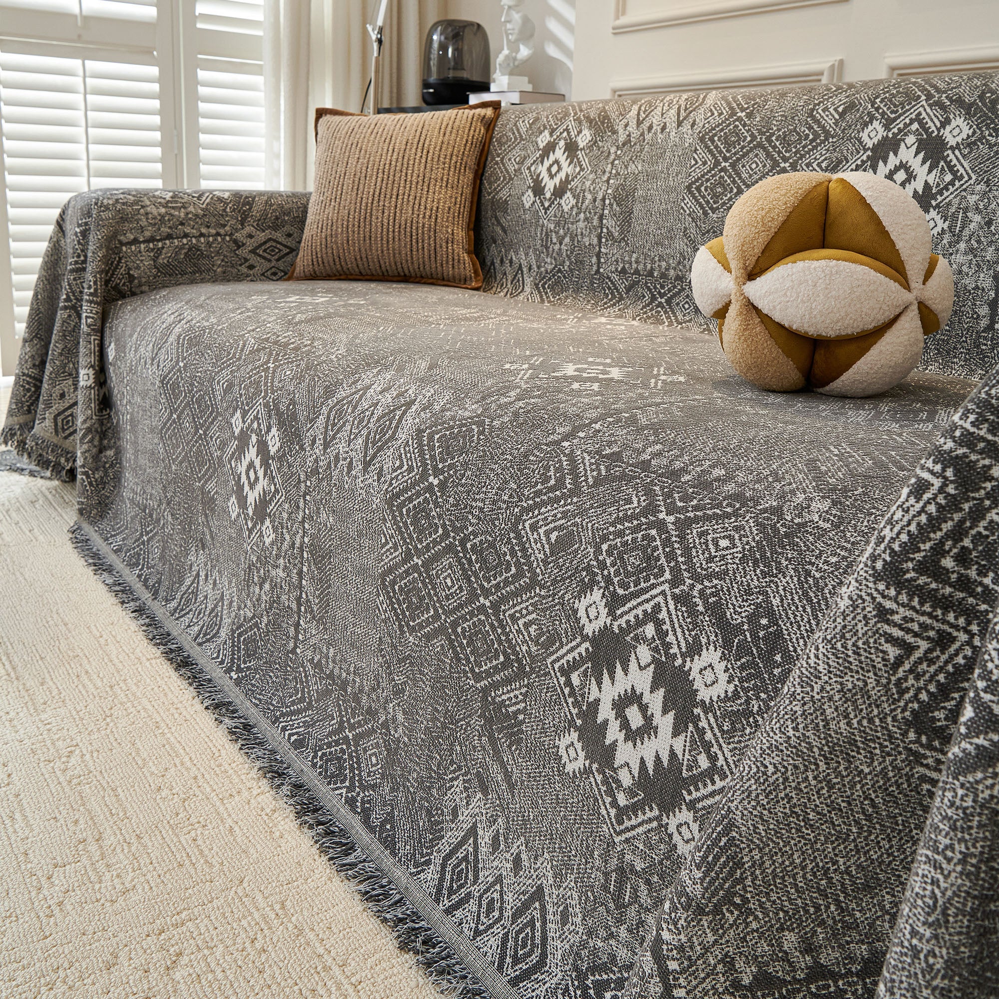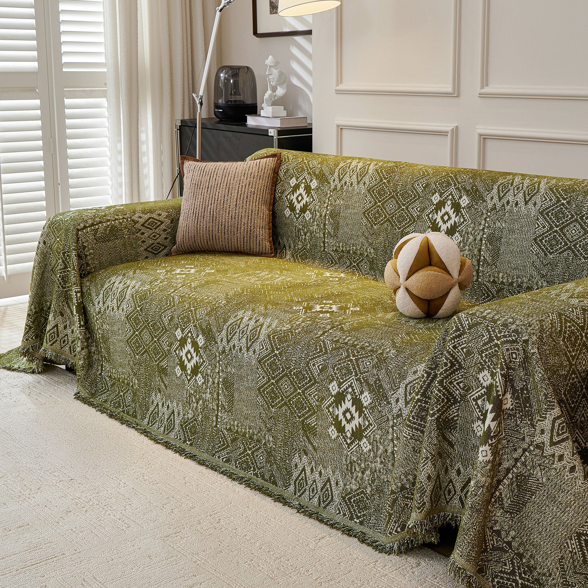 Funda de sofá de lujo con borlas y diseño de espiga que admite mascotas
