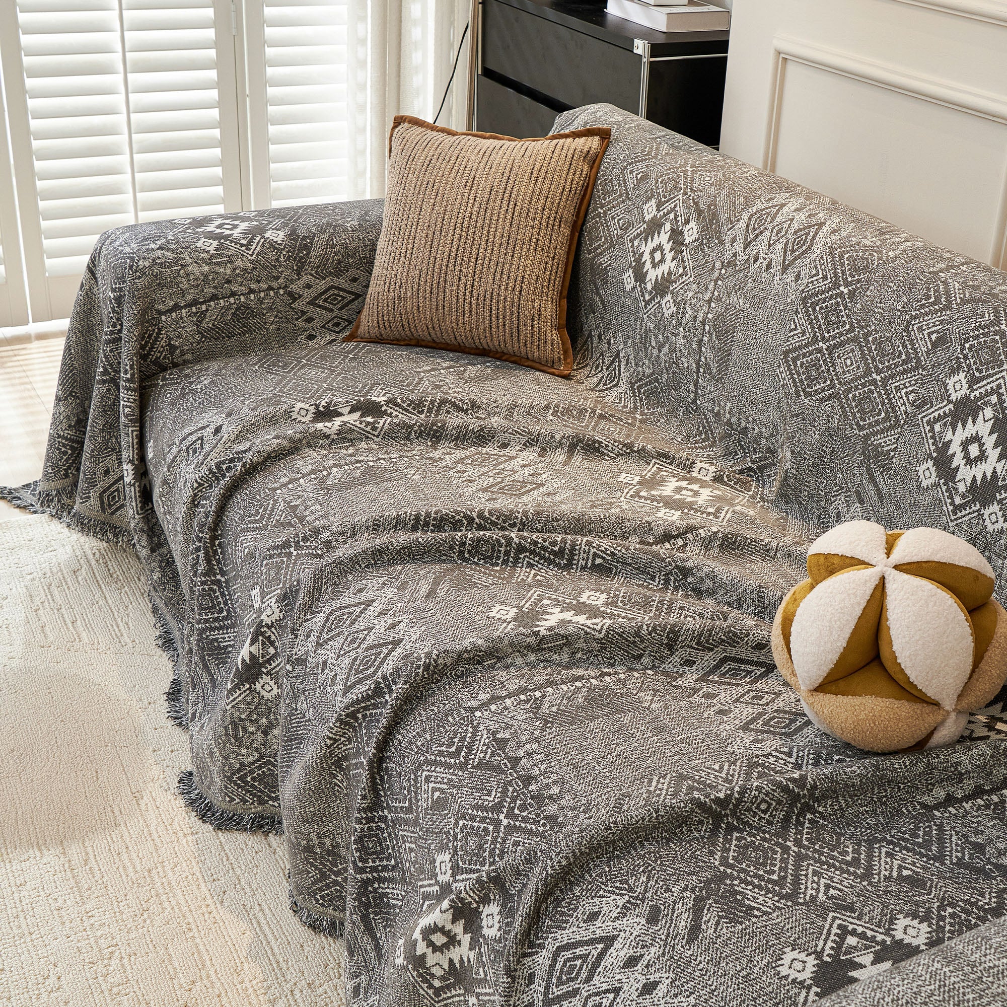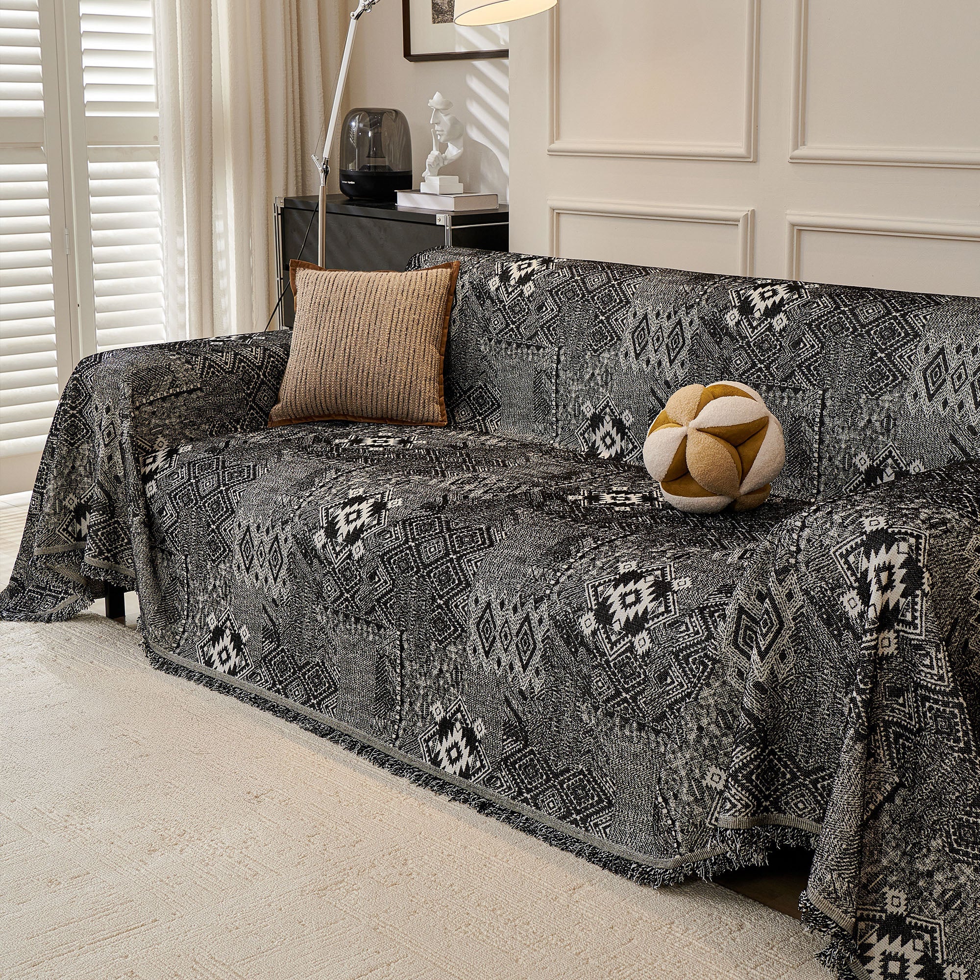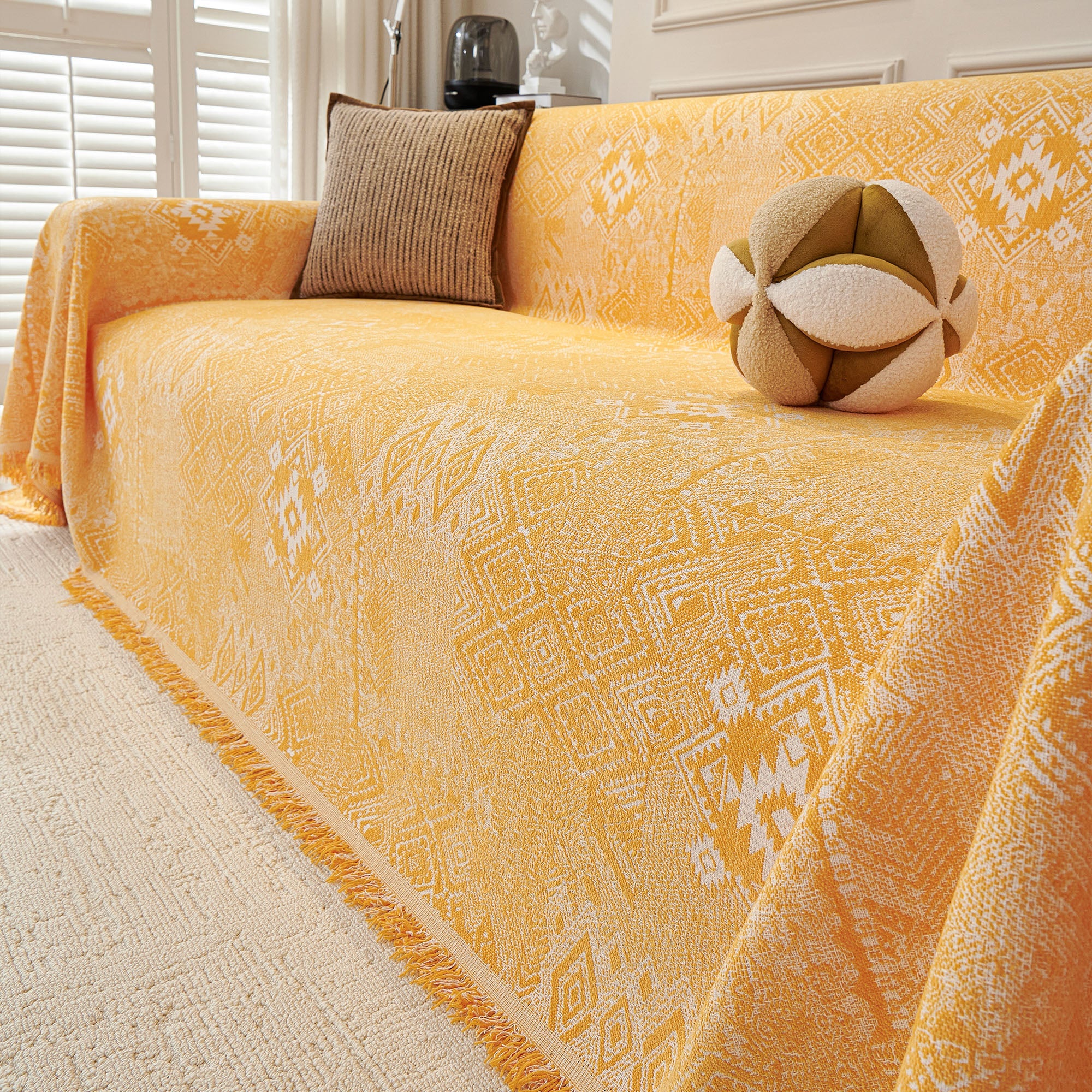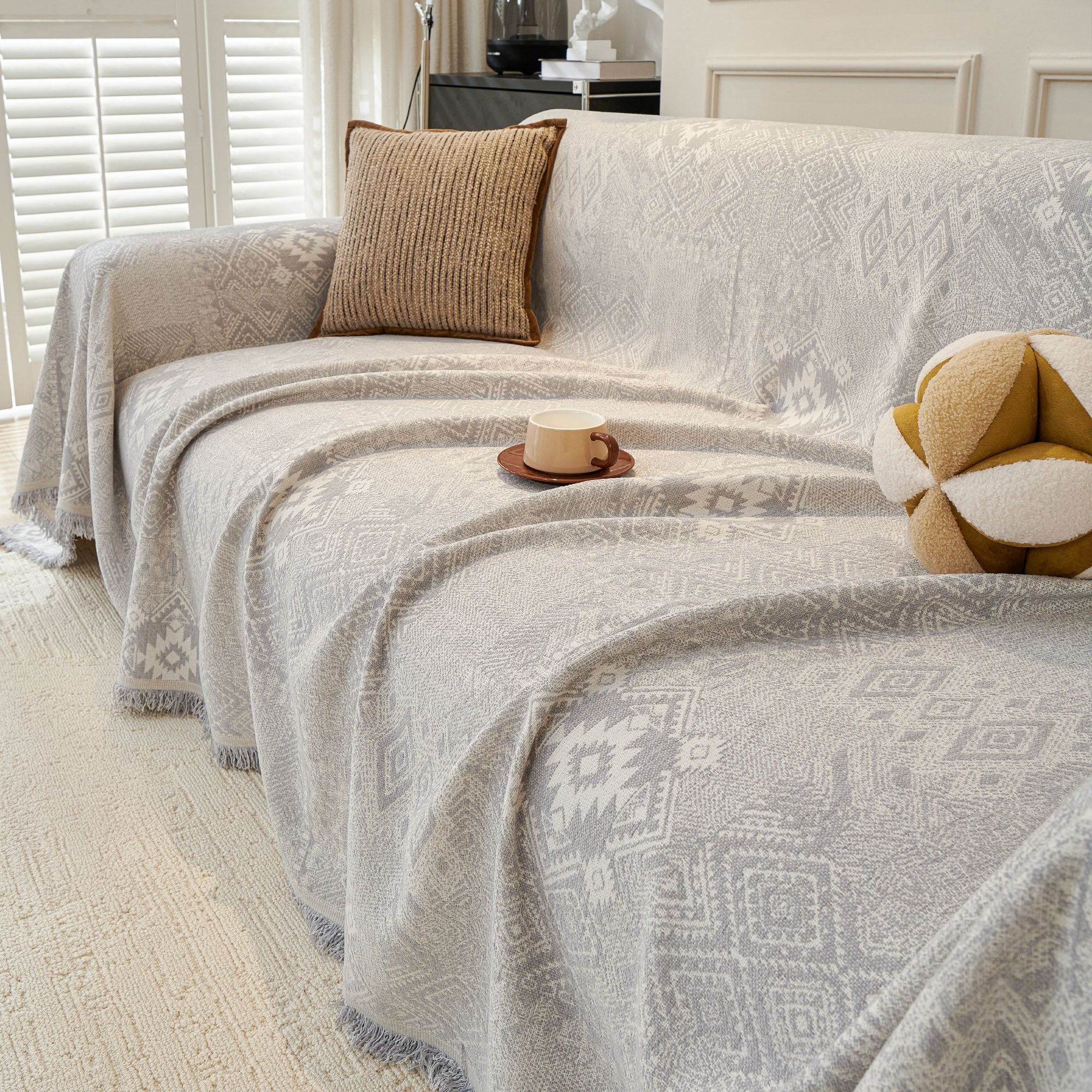 Funda de sofá de lujo con borlas y diseño de espiga que admite mascotas