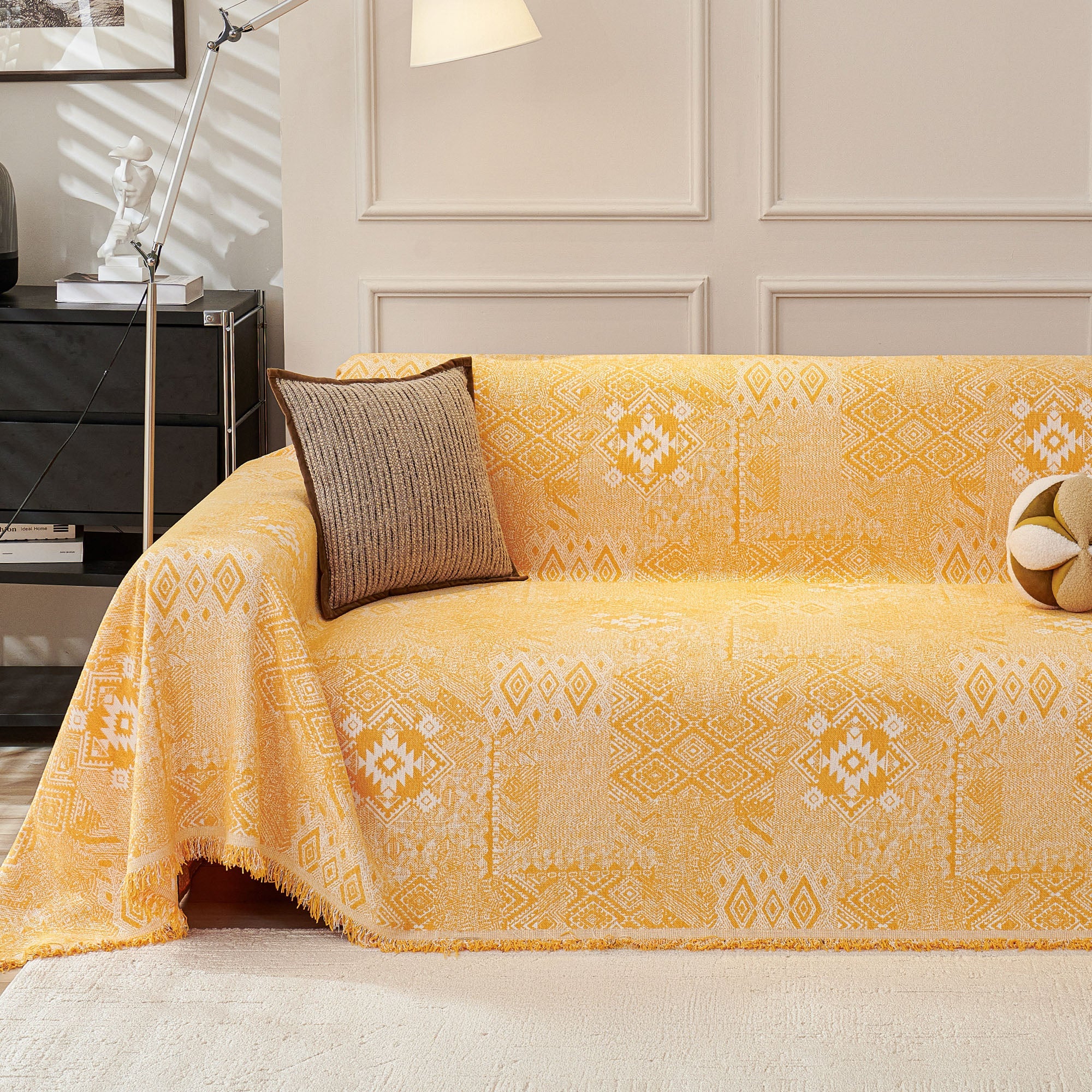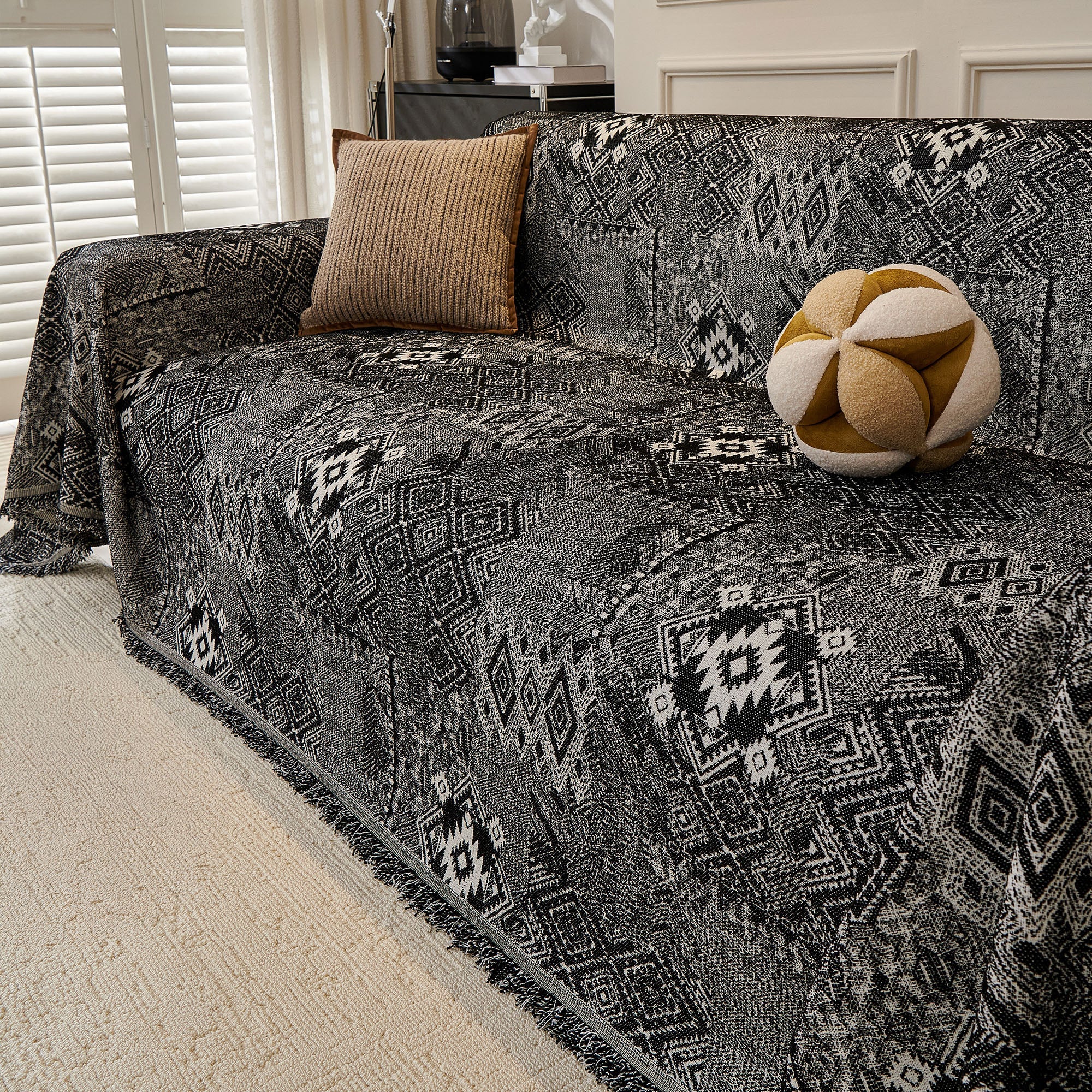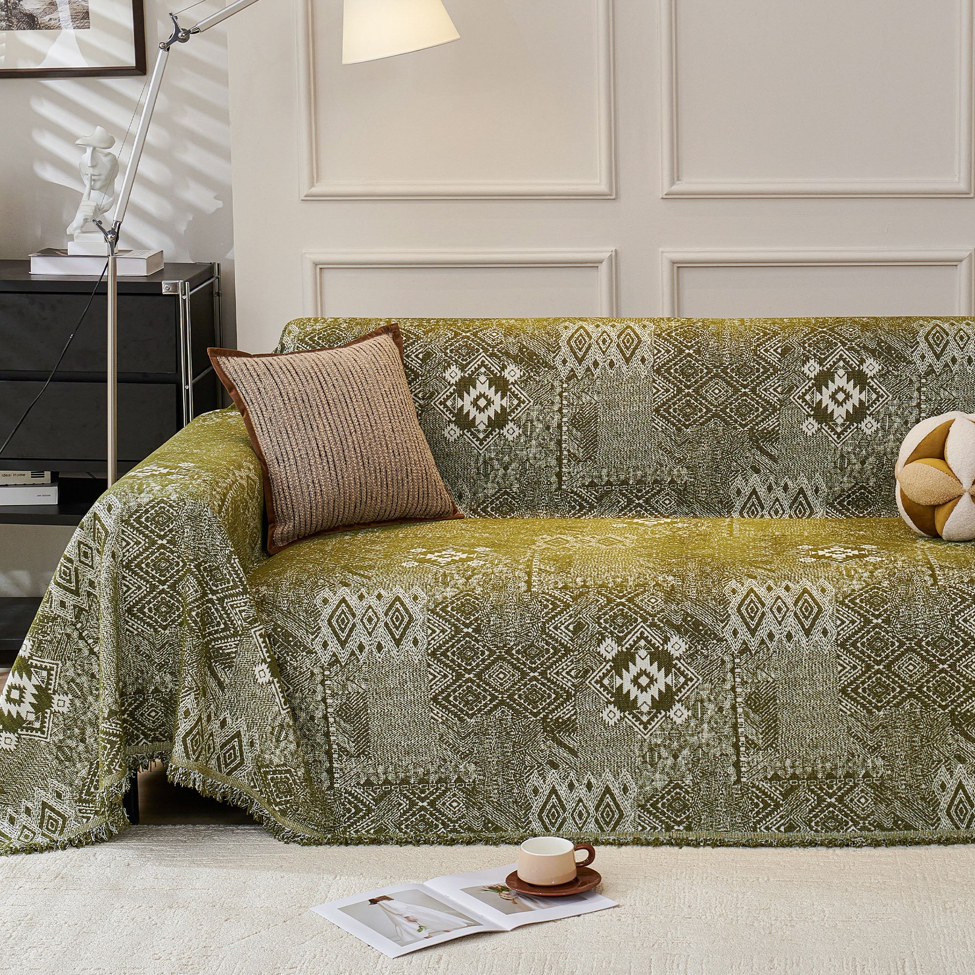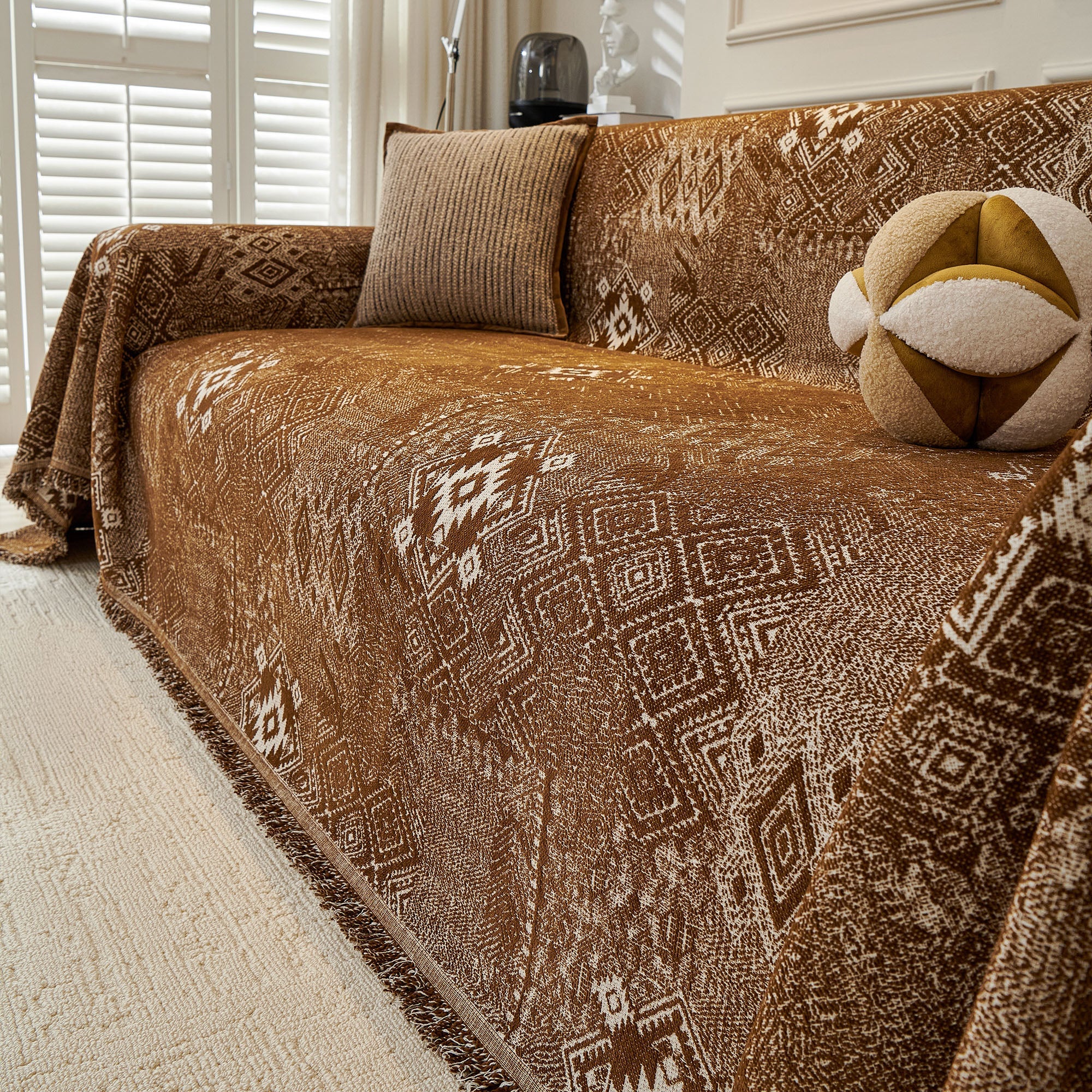 Funda de sofá de lujo con borlas y diseño de espiga que admite mascotas