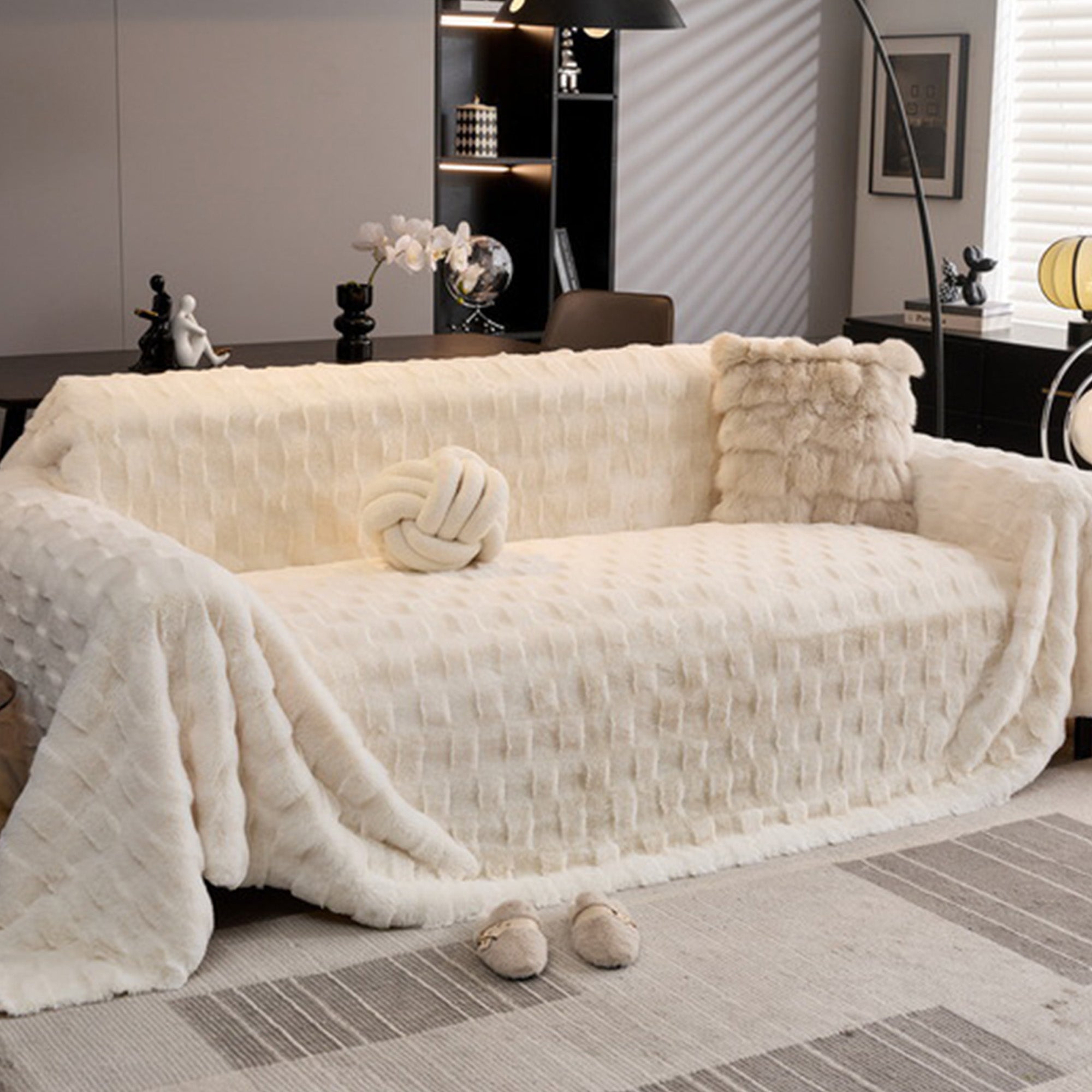 Esta cálida funda de sofá de forro polar con textura cóncava-convexa y pelo de conejo pequeño está diseñada para brindar comodidad y estilo, aportando un toque acogedor y lujoso a sus muebles. Su textura única y su cálido forro polar la convierten en el complemento perfecto para cualquier sofá, aportando calidez adicional durante los meses más fríos y realzando la estética general de su sala de estar.